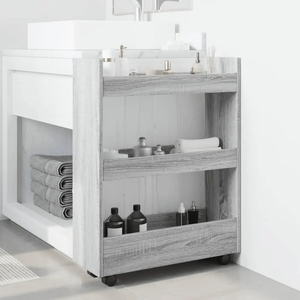 Vidaxl Narrow Storage Trolley 3 Tier Grey Sonoma Engineered Wood