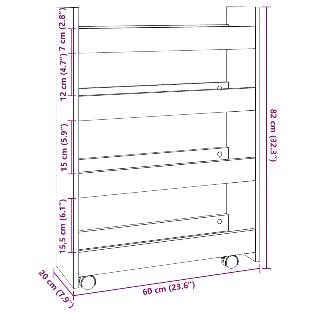 This narrow storage trolley is meant to be a decorative and practical addition to your home.Stable and durable material: Engineered wood is a durable and stable material with a smooth surface that is warping, and splitting, making it a reliable choice for a variety of projects.Ample storage space: The slim storage trolley provides ample storage space for keeping your various daily essentials well organised and within easy reach.Easy to move: This rolling cart, with the included four swivel wheels, can be easily moved to the desired place. The two wheels are lockable, which keeps the cabinet in position and adds stability.Wide applications: Depending on your needs, you can use this storage trolley in the living room, kitchen, or bathroom thanks to its narrow shape, even in small spaces.