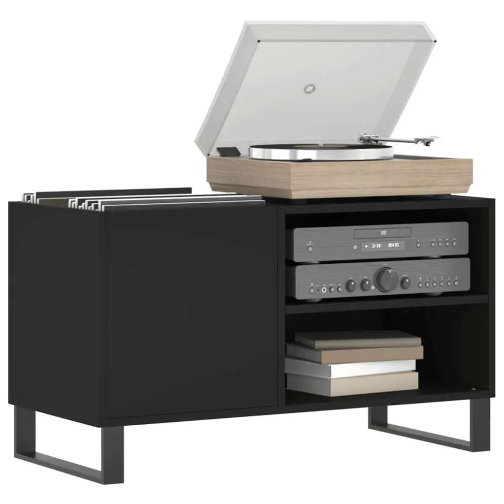 Vidaxl Record Cabinet Black Engineered Wood, Iron