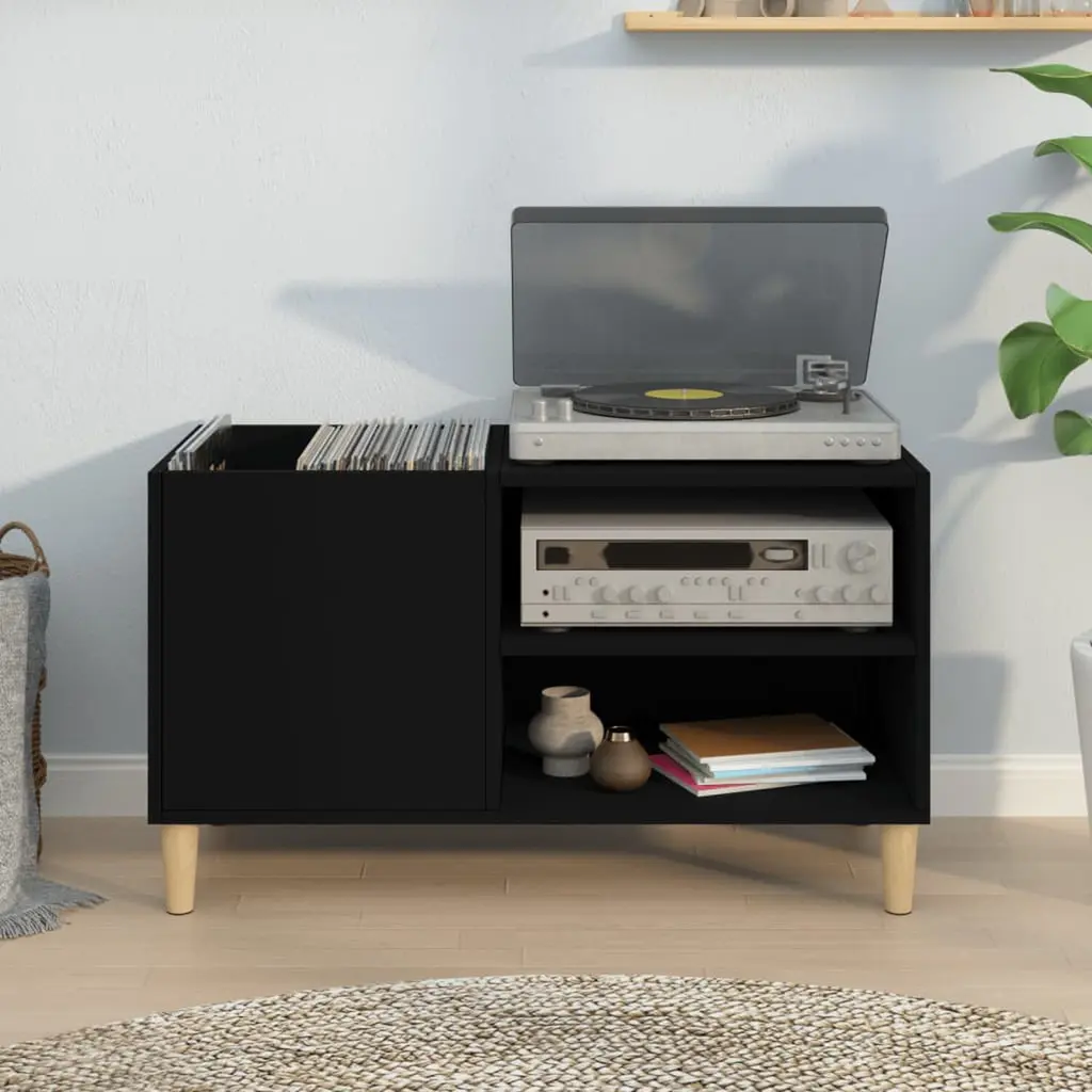 Vidaxl Record Cabinet Black Engineered Wood Medium Record Cabinet