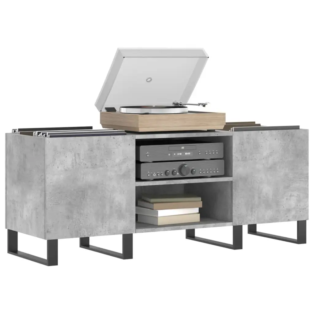 Vidaxl Record Cabinet Concrete Grey Engineered Wood And Iron Medium