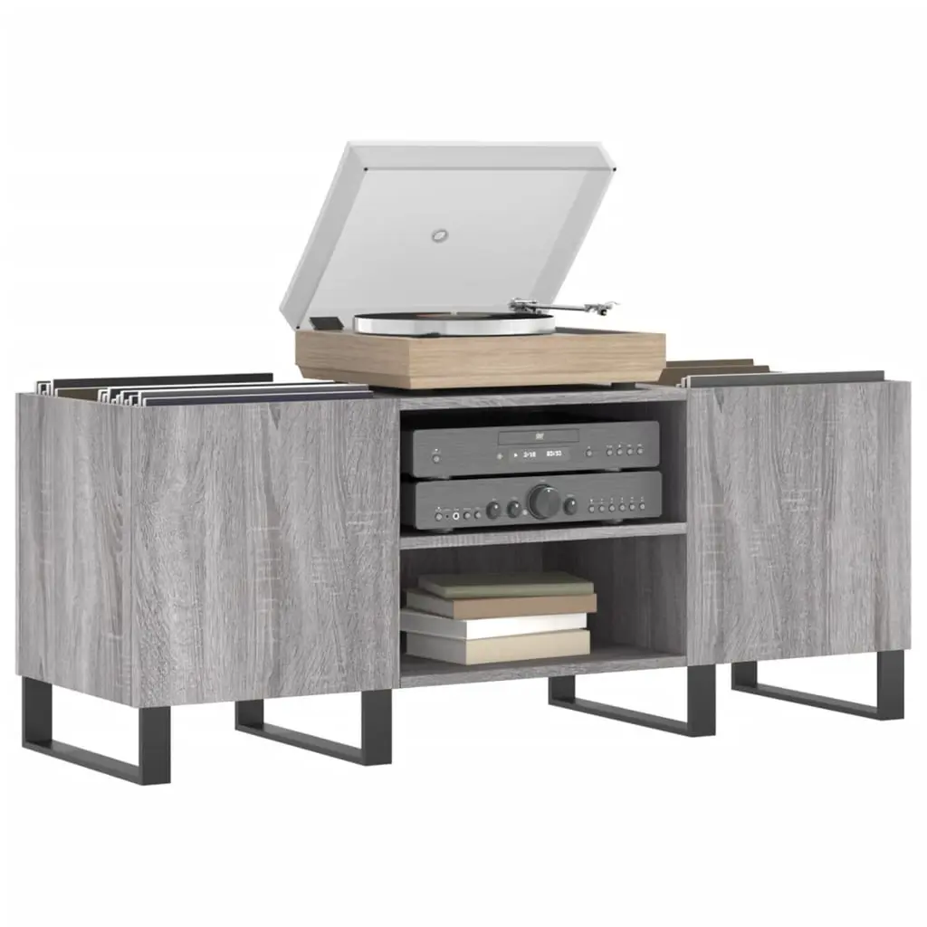 This Stylish Grey Sonoma Record Cabinet is a modern and functional piece designed especially for vinyl lovers. With its sleek grey sonoma finish, it fits perfectly with contemporary decor while keeping your valuable records organized and easily accessible. Loads of Storage: This cabinet has five spacious shelves, giving you plenty of room for all your vinyl. Whether you've got a few records or a massive collection, there’s space to keep them organized and on display. Industrial Look: The sturdy, factory-inspired vibe makes this cabinet a standout in any decor. Its matte finish and engineered wood body scream modern style and are perfect for displaying records and decor items. Super Versatile: Perfect for living rooms, this cabinet can also double as a feature in entertainment spaces. It’s great for record players and can display framed art or books too, adding a touch to your interior design. Quality Build: Made from high-quality engineered wood with strong iron legs, this cabinet is built to last. Its smooth texture adds a modern flair, making it as lovely as it is practical. Easy Maintenance: The matte finish means easy cleaning; a quick wipe with a damp cloth takes care of dust and smudges. This simple upkeep keeps your cabinet looking sharp for years.