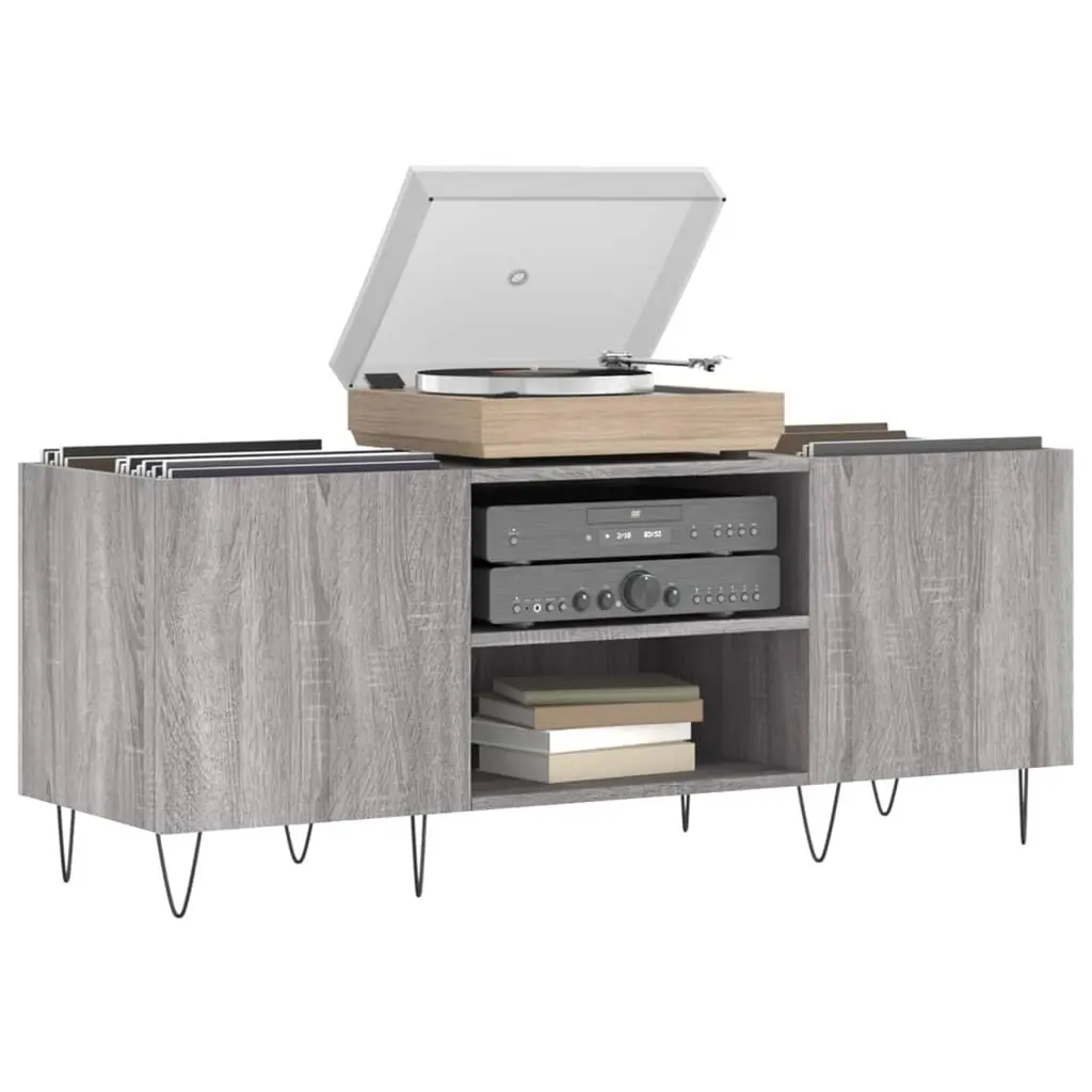 Vidaxl Record Cabinet Grey Sonoma Engineered Wood, Iron Medium