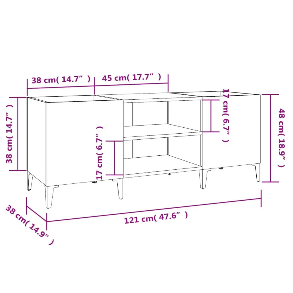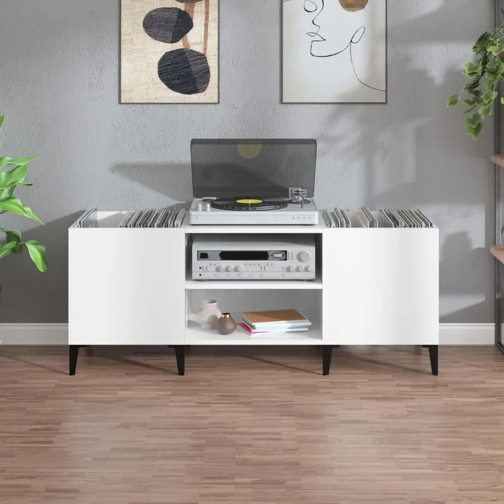 This Industrial Vinyl Record Storage Cabinet stands out with its unique look and function, making it perfect for music fans and modern decor lovers alike. Its high gloss white finish not only amps up its sleek style but also reflects light nicely, brightening up your living room while providing a stylish spot for your treasured vinyl. Strong and sturdy design to keep your vinyl records safe and tidy, while also being a standout piece in your home.With its shiny finish, it enhances the look of your space, making it a real eye-catcher.This versatile piece not only stores vinyl records but can also serve as a TV cabinet or side table, fitting various storage needs.Generous shelf space with two solid shelves for a safe and stylish display of your items.Crafted from engineered wood for lasting durability without skimping on style.