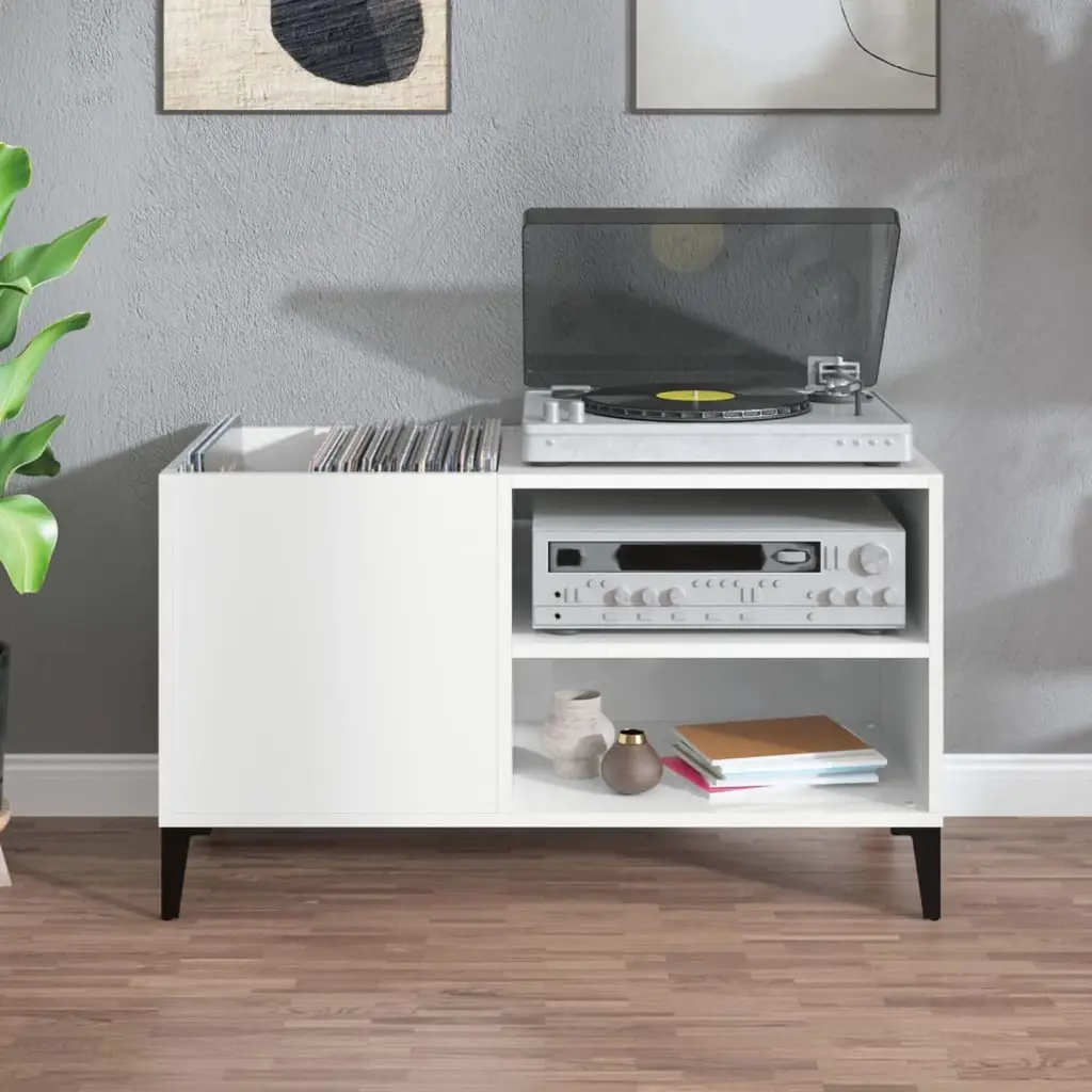 This Vinyl Record Cabinet is all about style and practicality, made from tough engineered wood. The high-gloss white finish not only gives you plenty of space for your precious LP records but also adds a classy touch to any living room or office. It fits in easily with both modern and industrial decor. Ample Storage Capacity: This cabinet is built to hold a large vinyl record collection, so they’re easy to access and well organized. With a spacious interior, you can keep your records safe from scratches or damage—perfect for any music fan.High-Gloss Finish: The shiny white surface not only boosts its look but also makes it simple to clean and take care of. This glossy finish brightens up your space, adding a modern and classy feel.Sturdy Construction: Made from top-quality engineered wood, this cabinet guarantees long-lasting durability and a solid build. It can handle heavy record collections, and the smooth finish feels nice to the touch.Versatile Use: Its trendy design makes this cabinet perfect for many places, whether it’s in your living room, office, or entertainment area. Use it to show off your precious vinyl collection or as a console cabinet for extra storage.Industrial Style: The modern and industrial design elements let this cabinet blend in with a range of home decor styles, making it not just a simple storage option but a stylish piece of furniture as well.