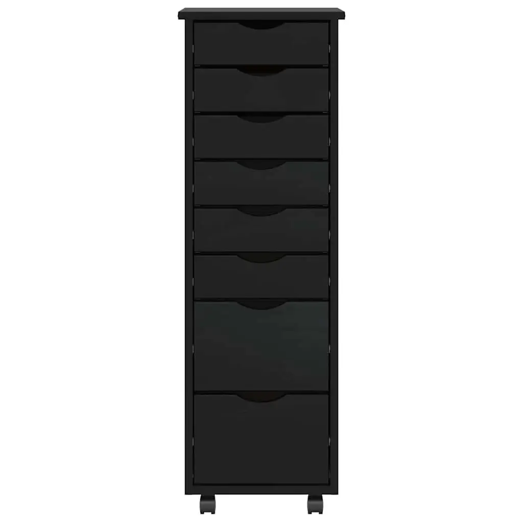 This Black Rolling Cabinet is a great addition to any home or office, offering loads of storage and keeping things organized. Its modern rectangular shape and classy matte finish not only make it functional but help it fit into any room, whether it's an office, living room, or bedroom. Ample Storage: This cabinet has a big eight-drawer setup, helping you to keep papers, documents, and files organized. With ample space, you can keep things tidy and boost your productivity.Rollable Design: Four wheels on the base make moving it around easy, letting you change up your space without breaking a sweat.Modern Style: The cabinet features a chic matte black finish that fits well with modern designs, adding a classy touch while meeting your storage needs.Durable Material: Made from solid pine wood and built to last, it can handle daily use like a champ.Easy to Maintain: A quick wipe with a damp cloth is all it takes to keep it looking good for ages. Low upkeep is perfect for busy lifestyles.