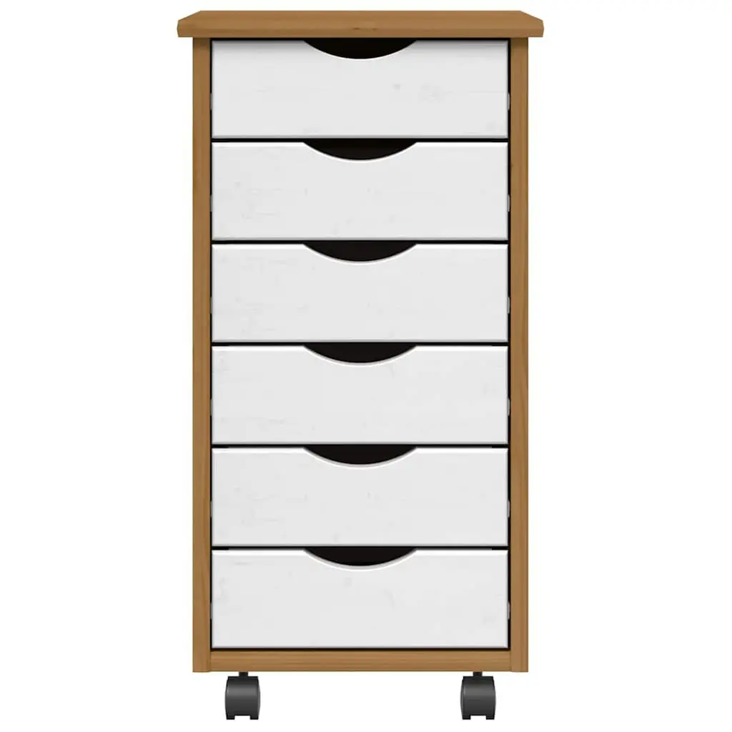 This honey brown and white rolling cabinet is a smart addition to any workspace or home. With six large drawers, it's designed to help you keep things tidy and offers both style and functionality, making it perfect for offices, living rooms, or bedrooms. Loads of Storage: Six drawers give you plenty of space for papers, tools, or office supplies to keep your space tidy.Easy to Move: With four smooth wheels, it’s easy to shift around to fit your needs, whether you’re rearranging your workspace or grabbing things from different spots.Flexible Design: Its modern style fits perfectly in lots of settings, from a sleek office to a comfy craft room, complementing your décor while adding practical storage.Sturdy Build: Made from solid pine wood, this cabinet is built to last, giving you quality and style for years.Care Instructions: Keeping it clean is a breeze; just use a damp cloth to keep it looking sharp without any harsh chemicals.