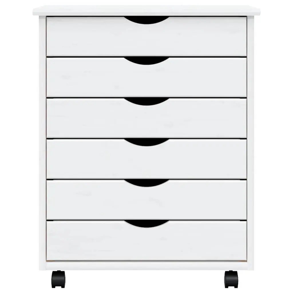 This MOSS White Rolling Cabinet is a smart storage solution for your office, living room, or anywhere that needs a stylish touch. With its sleek lines and smooth finish, it combines function with modern style, making it fit in with both contemporary and traditional decor—perfect for anyone who wants both style and practicality. Ample Storage: This rolling cabinet has six roomy drawers, making it just right for storing office supplies, files, or other essentials. Each drawer is easy to access so you can find what you need without the hassle.Flexible Mobility: This piece comes with solid wheels, letting you easily move it from one room to another, keeping up with your changing needs. Perfect for when you're rearranging or setting up a new office layout.Durable Build: Made from solid pine wood, this cabinet is built to last, allowing daily use without losing its style. The strong material keeps it looking good over time, making it a reliable storage choice.Modern Design: The sleek matte white finish and clean lines of this cabinet give it a polished look that fits in with all types of room styles. It's great for living rooms, bedrooms, or workspaces.Easy Maintenance: The smooth surface makes it a breeze to clean—just a quick wipe with a damp cloth does the trick. This makes it easy to keep your cabinet looking fresh.
