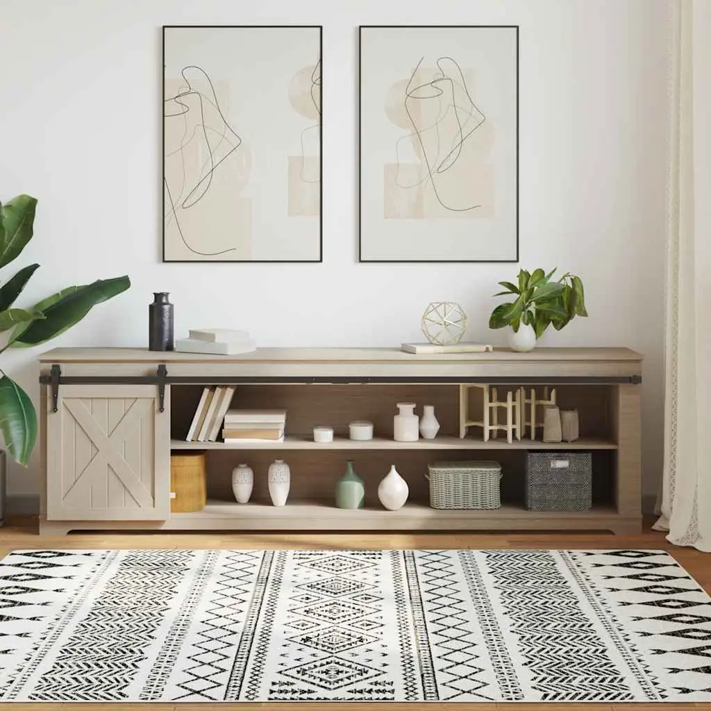 This sliding cabinet door kit lets you open or close the cabinet quietly and effortlessly.Durable material: The sliding cabinet door kit is made of powder-coated carbon steel, which is sturdy, durable, and heavy-duty.Silent and smooth: Thanks to the internal bearings, your doors can slide smoothly and quietly. Door stops are also included to prevent the derailing of the rollers, while the rubber gaskets will buffer the bump from the rollers and reduce the noise.Wide applications: This sliding cabinet door kit includes 2 sliding rails (with a total length of 83.9 ") and 2 rollers. It is designed for sliding doors with a thickness of 22–0.98 " in barns, kitchens, and studies, and so on.Timeless design: The sliding cabinet door kit suits almost any decor with its compact, timeless design.