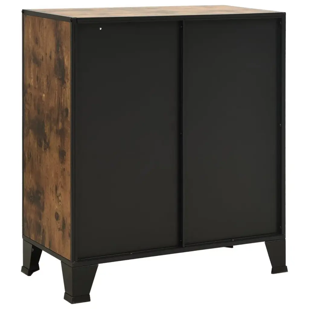 Vidaxl Storage Cabinet File Cabinet With Doors For Living Room Metal And Engineered Wood - Rustic Brown