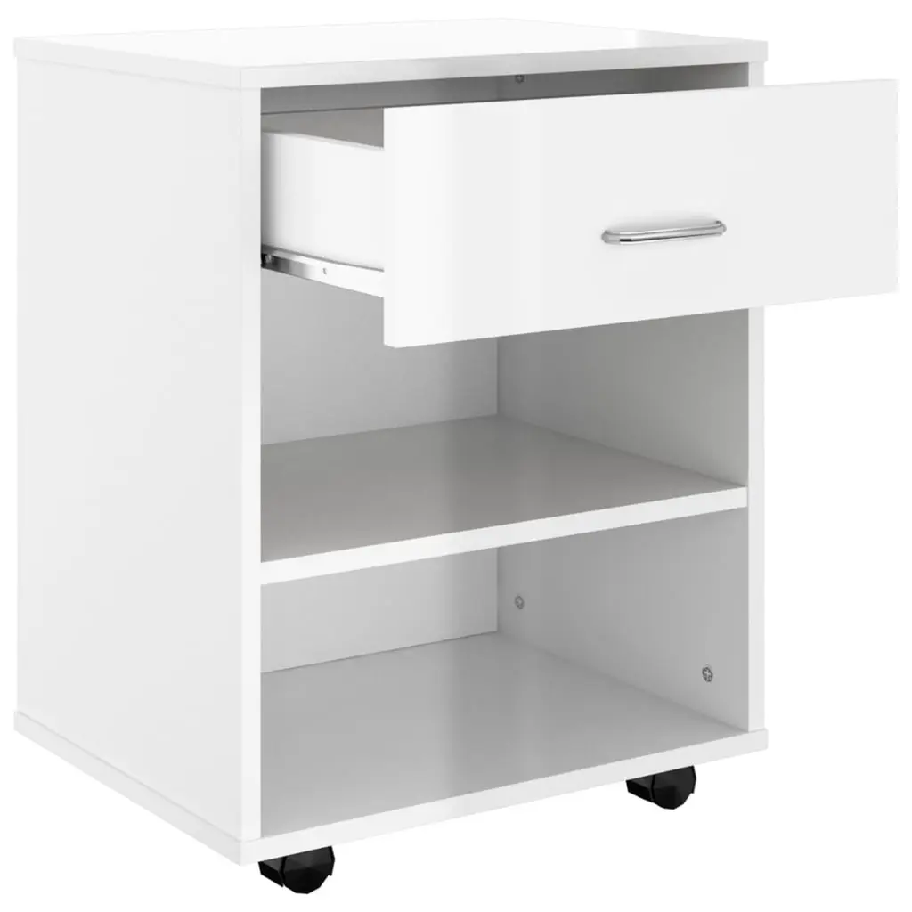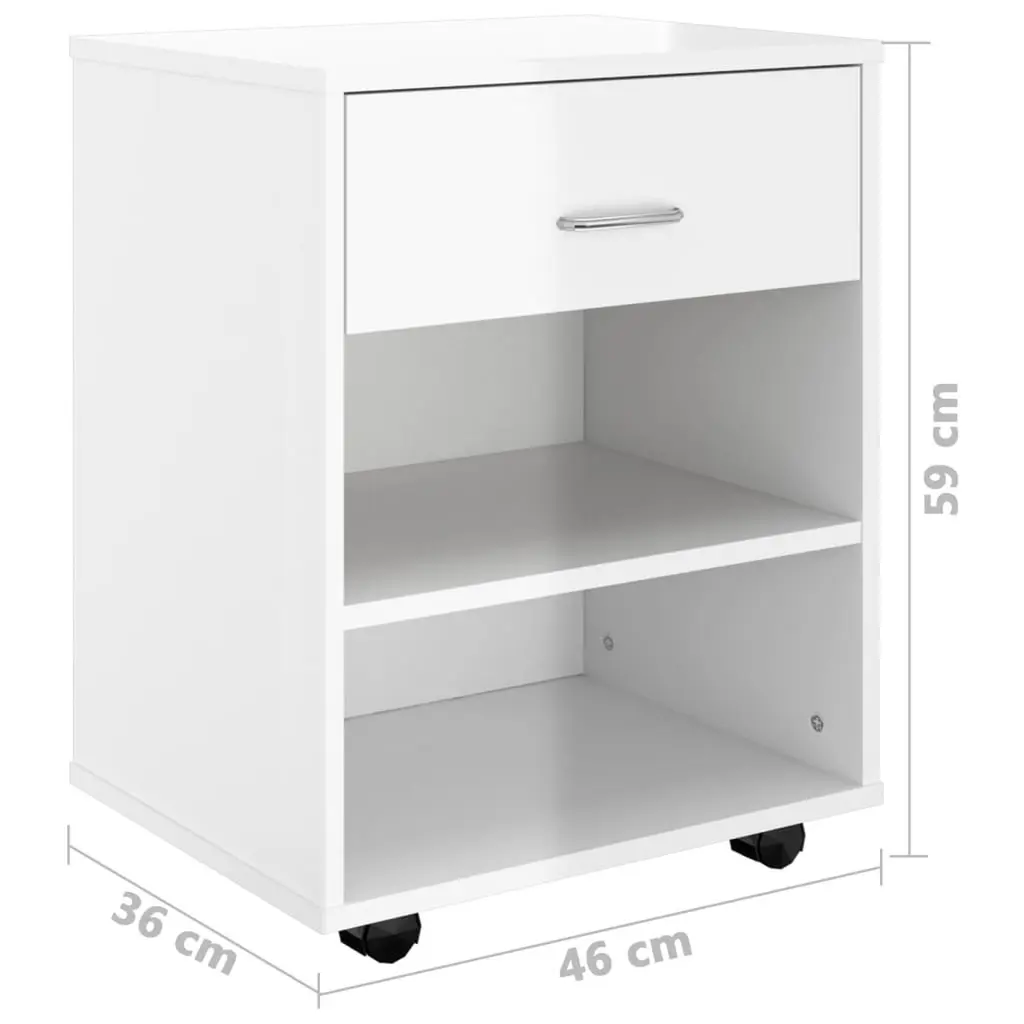 This rolling storage cabinet is a smart way to get your home or office organized. With a shiny white finish, it blends right in with modern decor and keeps things practical. Ample Storage Space: Made to give you loads of room for various items, this cabinet makes organizing your space easy.Mobility: It’s got lockable wheels so you can move it around effortlessly while keeping it steady when you need it to stay put.Easy Maintenance: The high-gloss surface is super easy to wipe down, making it ideal for busy spots.Modern Design: With a sleek look, this cabinet fits in nicely with different home office styles.Sturdy Construction: Built from manufactured wood, it’s strong and meant to last.