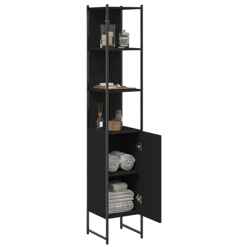 Vidaxl Tall Bathroom Cabinet Black Engineered Wood Rectangular