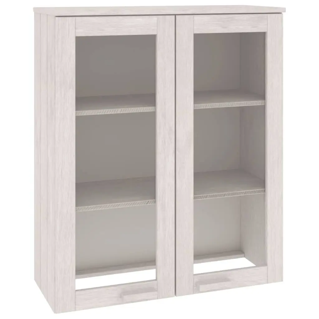 This wooden top for highboard makes a decorative and practical addition to your decor.This sideboard top is made of solid pinewood, making it steady and sturdy. It has three stable shelves on which you can place cups, photo frames, or other items you want to keep within reach. At the same time, the glass doors can keep these things free from dust. The top for cabinet is an excellent choice for you to create extra storage space.