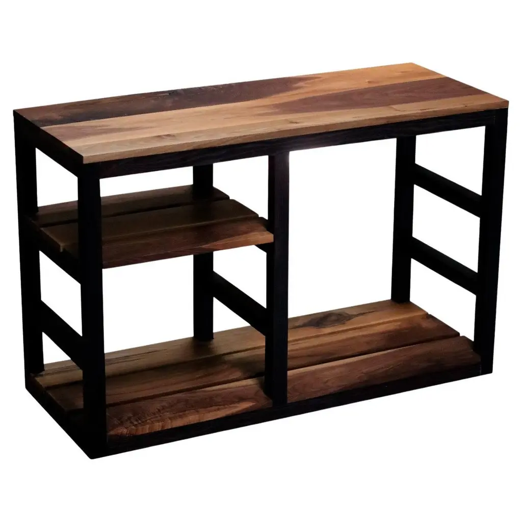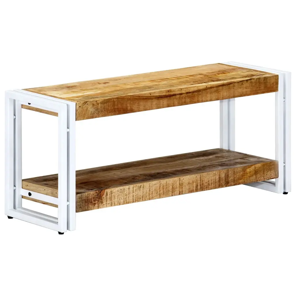 The minimalist style of the industrial-inspired wooden TV cabinet is perfect for bringing a sturdy presence to your living space.Made of solid mango wood, the side cabinet is stable, durable, as well as beautiful. Its legs are made of powder-coated iron which adds to the cabinet's stability and its industrial charm. The exquisite craftsmanship and the beautiful wood grains make every piece of furniture unique and slightly different from the next. Every step of the process is carried out with the greatest care, be it polishing or lacquering. Additionally, this TV cabinet is designed with a shelf under the tabletop for extra storage space. The TV cabinet is easy to assemble.Important note: Colour and grain vary from piece to piece which make each of our cabinet unique. The delivery is random, ensuring the exclusivity and individuality of your product.