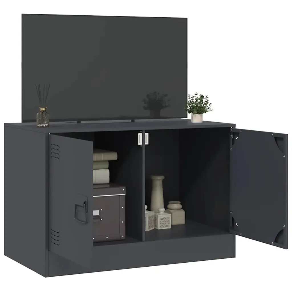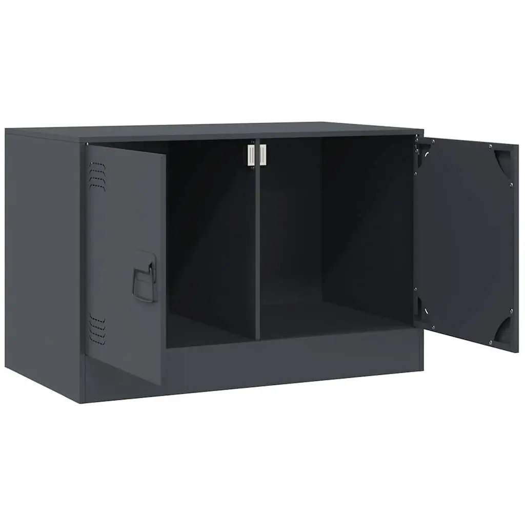 This Anthracite Steel TV Cabinet is spot on for organizing your living room or office space while showing off your entertainment gear. With its sleek look and plenty of storage, this media unit adds a stylish, professional touch to any place, keeping all your components and devices neat and tidy. Modern Design: The TV cabinet sports a sleek look with soft edges and a matte finish, fitting any modern interior effortlessly while providing a functional space for your TV and media gear. Ample Storage: With two spacious doors, store DVDs, game consoles, and other media gear, keeping your area tidy and organized. Durable Construction: Made from strong cold-rolled steel, this unit is built to last, holding up to 154 lbs while keeping everything secure. Easy Maintenance: Its stylish matte finish not only looks good but makes cleaning a breeze. Just a quick wipe with a damp cloth does the trick! Versatile Use: Perfect for living rooms or offices, this cabinet serves multiple roles, matching your lifestyle needs without compromise.