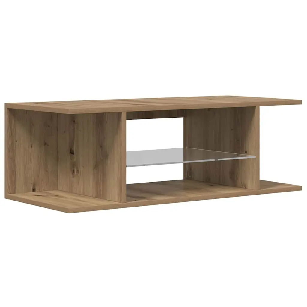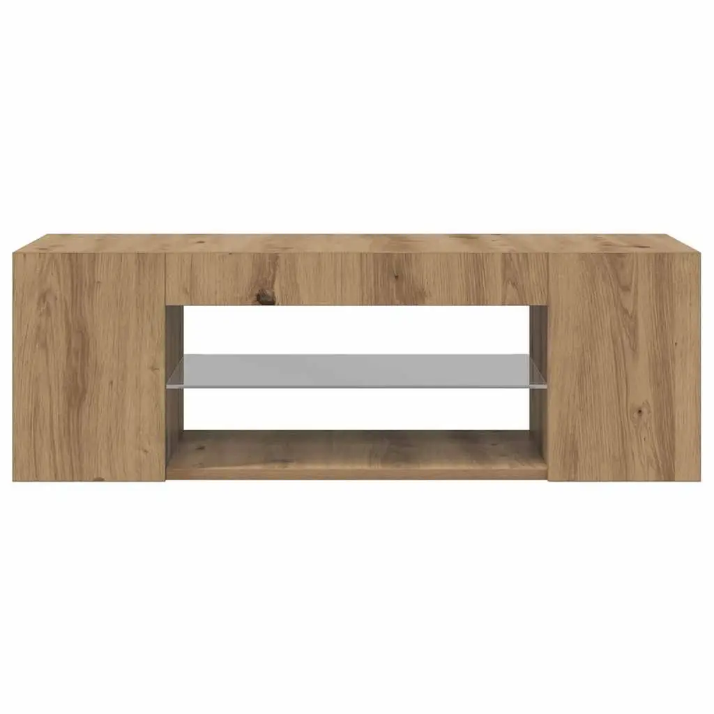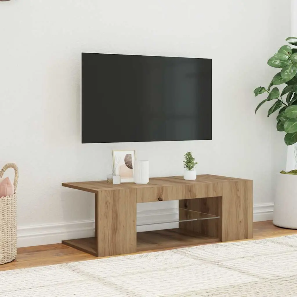 This Modern TV Cabinet jazzes up spaces with its slick design and gorgeous artisan oak finish, making it a classy addition to any living room. Measuring 35.4 in long, 15.4 in wide, and 11.8 in high, this cabinet not only provides loads of room for your media devices but also boosts the room's vibe with its built-in LED lights, perfect for showing off your favorite decor and creating a cozy evening atmosphere. Ample Storage: The cabinet has two floating shelves and loads of surface area, giving you plenty of storage for your TV accessories, gaming consoles, and decor. The smart design helps keep your living room neat and stylish. Integrated LED Lighting: Fitted with multicolored LED strip lights, the cabinet creates a stunning visual. The remote lets you easily switch things up, ensuring an immersive experience while you're watching films or gaming. Stylish Brown Finish: The lovely artisan oak color adds warmth and charm to any modern decor. Its smooth matte finish not only looks fab but also makes cleaning easy, keeping things low-maintenance. Multi-functional Use: Perfect for home, this cabinet shines in living rooms, bedrooms, or home theaters. Its adaptable design fits in with any style, becoming a chic focal point in your pad. Free-standing Structure: The cabinet has a strong free-standing structure for easy placing and access. It’s steady on any flat surface, giving you confidence for your heavy devices.