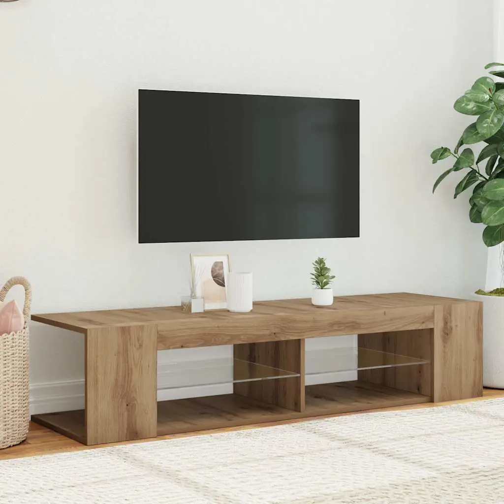 This modern TV cabinet is all about style and function, making it a must-have in any living room or bedroom. With a sharp artisan oak finish and smart LED lights, it upgrades your entertainment zone while offering lots of room for your media bits and bobs. Dynamic LED Lighting: The fancy LED lights not only jazz up the cabinet but also enhance your viewing experience with adjustable lighting that fits your mood or event. Exceptional Storage Capacity: With four floating shelves and a big surface area, this cabinet gives you loads of room for your TV, gaming gear, and decorative bits, keeping everything neat and handy. Contemporary Aesthetic: The sleek lines and modern design mean it fits right into various styles, whether that's minimal, chic, or contemporary. Engineered Wood Construction: Made from quality engineered wood, this cabinet stands up to daily use while staying stylish, making it a long-lasting addition for any home. Easy Assembly: Comes with clear instructions and needs just two people to set up, so you can enjoy your new furniture in no time.
