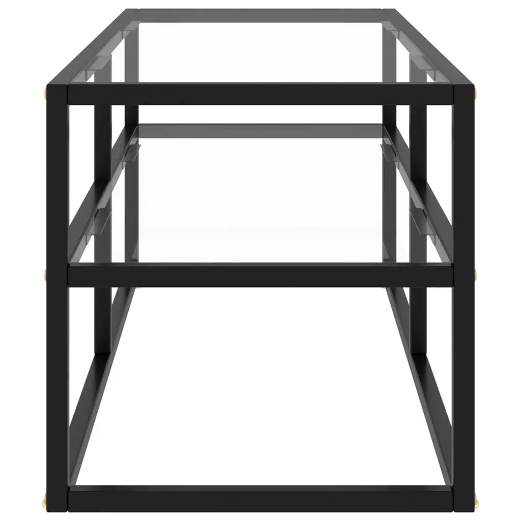 This modern TV cabinet makes a stylish and useful addition to your living room, designed to fit in with all sorts of interior styles and offering loads of storage space. The sleek black and transparent finish matches the clean lines of the cabinet, making it a great display for your TV and gadgets that blends well with your home decor. Features a robust metal frame coated with powder for extra protection.Single large shelf made of tempered glass for a contemporary feel.Two storage compartments for DVD players, gaming consoles, and other media accessories.Compact design makes it easy to fit in any room without taking up too much space.Easy to clean – just wipe it down with a damp cloth and you’re good to go.
