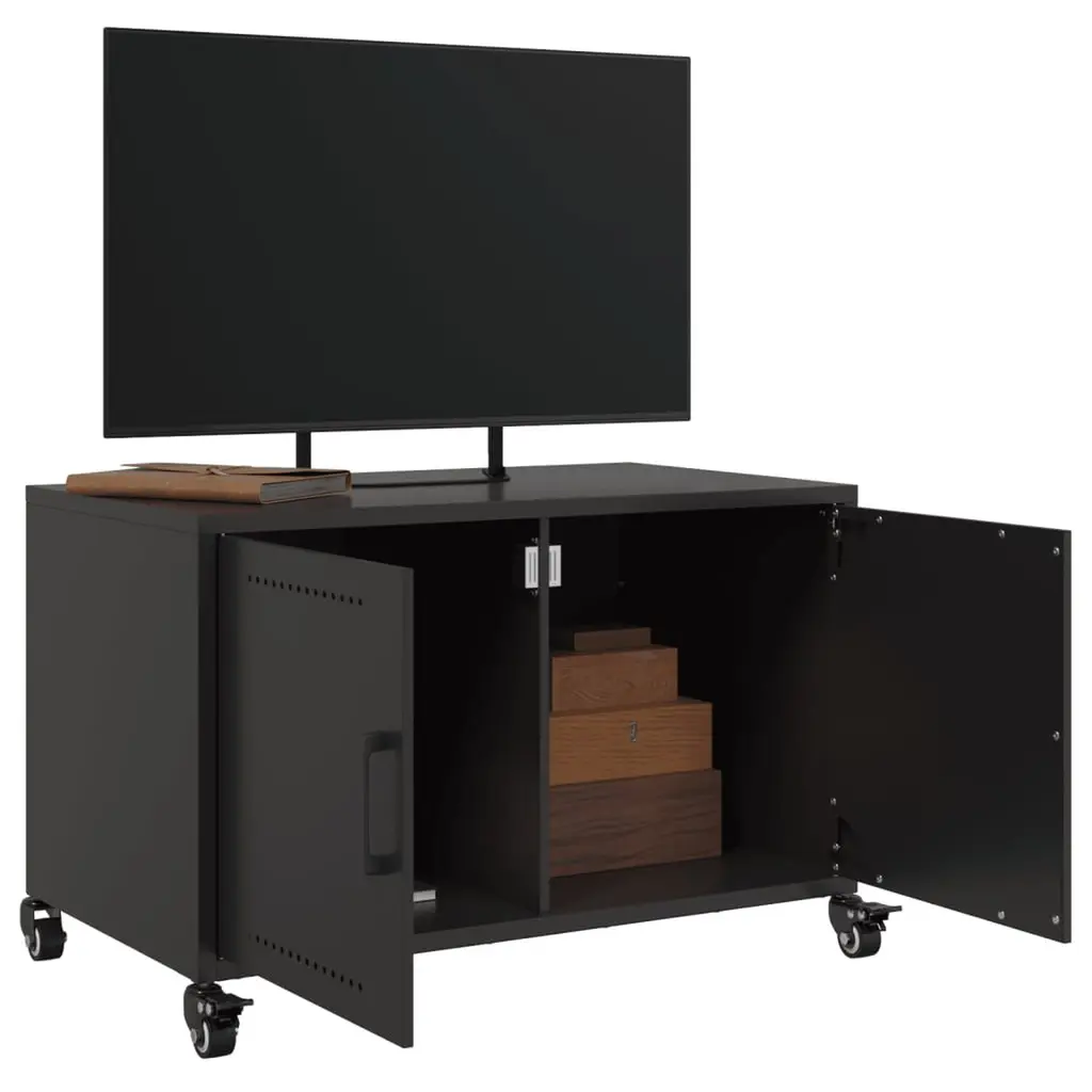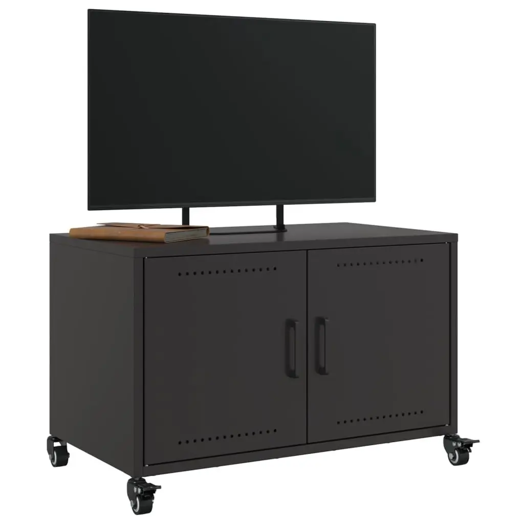 Vidaxl Tv Cabinet Black Cold-Rolled Steel Small Tv Cabinet Rectangular