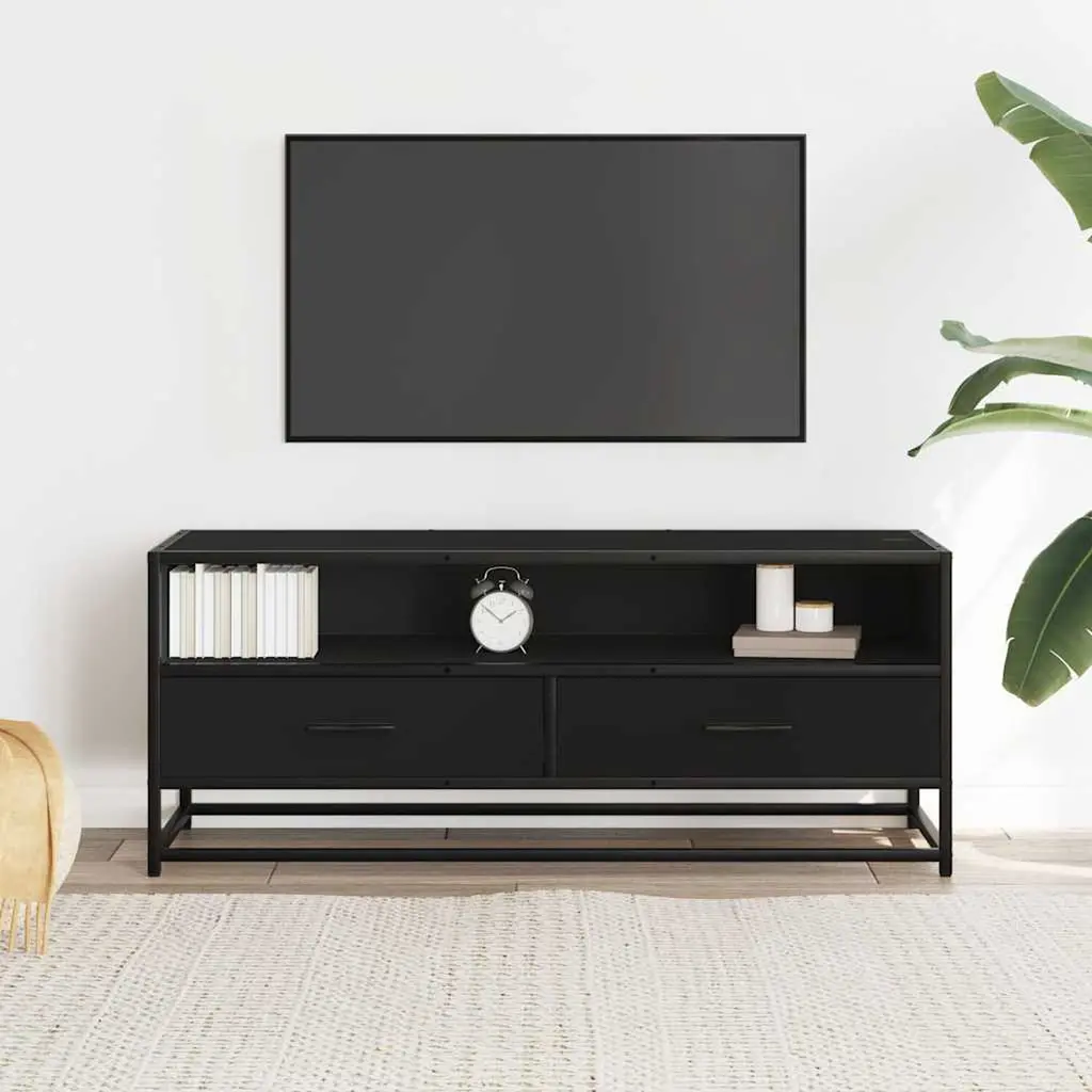 Vidaxl Tv Cabinet Black Engineered Wood And Metal Medium Tv Cabinet