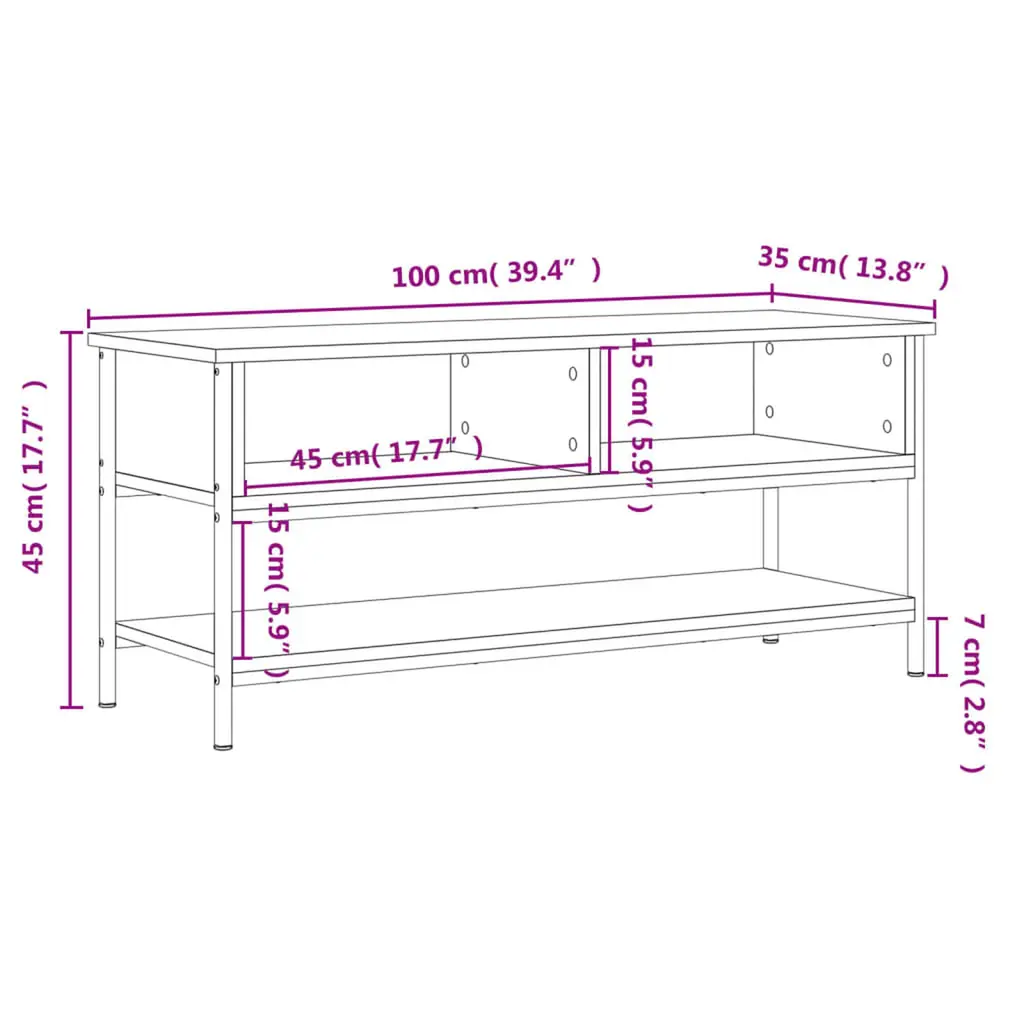 Vidaxl Tv Cabinet Black Engineered Wood, Iron 39.4 X 13.8 X 17.7 In