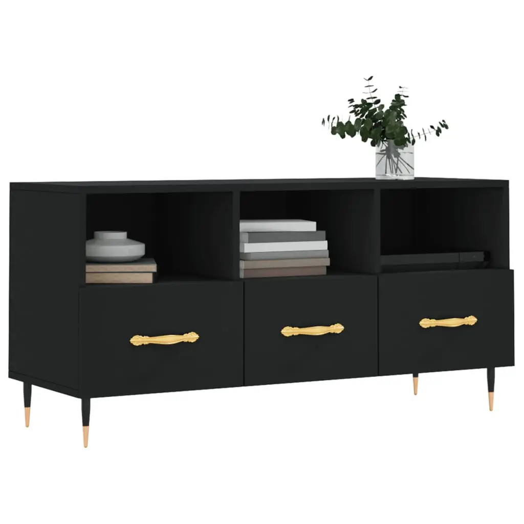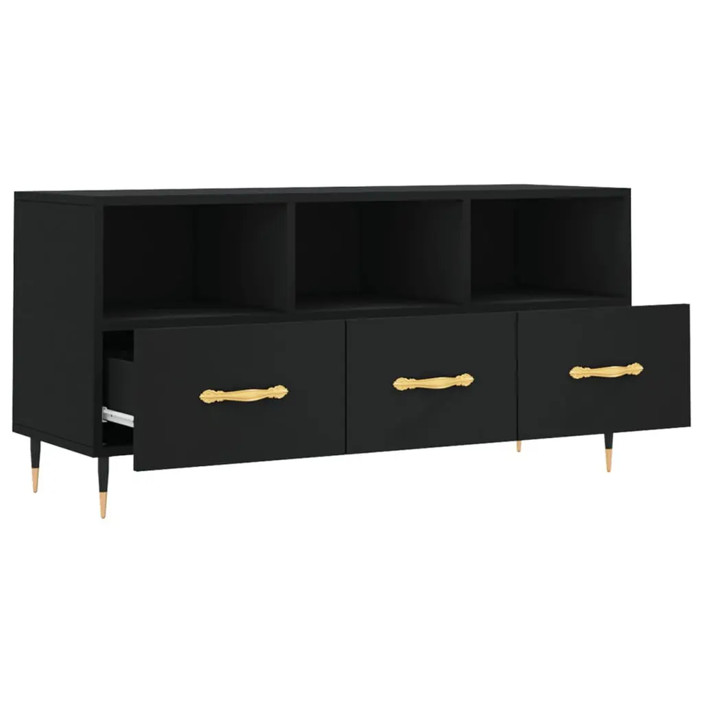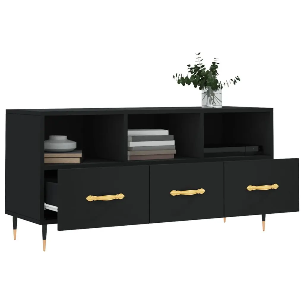 Vidaxl Tv Cabinet Black Engineered Wood, Iron 40.2 In Wide Tv Cabinet