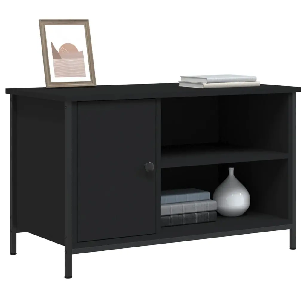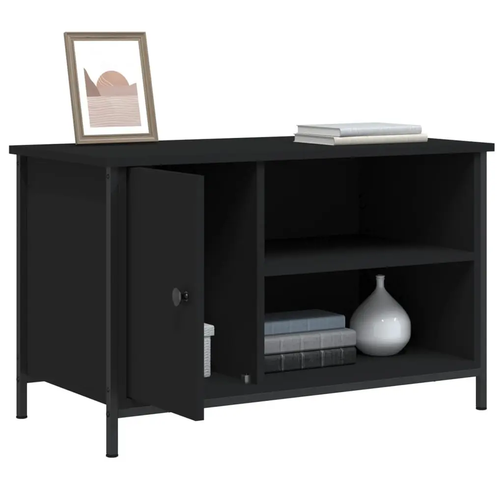 This TV cabinet brings together an industrial look with practicality, acting as a fancy decorative piece while providing loads of space for your media needs. Made from sturdy engineered wood and bolstered by solid iron legs, this cabinet adds a modern touch to any living room or bedroom, perfect for showing off decor or tidying up media devices in style. Ample Storage: This TV cabinet has plenty of built-in shelves, perfect for stashing remotes, gaming consoles, or decorative bits. It keeps your living area neat while making essentials easy to grab.Durability: Made from top-quality engineered wood, this cabinet promises long-lasting use and easy upkeep, so you can chill about your purchase. The iron legs add stability, making it stand up to daily life.Stylish Design: The cabinet has a sleek black matte finish and an industrial design that goes well with loads of home styles, making it a fab addition to both modern and vintage looks.Versatile Use: Ideal for living rooms and bedrooms, you can use this cabinet to display your TV or decorative items in a classy way, boosting the overall look of your space.Dimensions: At 31.5 in long, 15.7 in wide and 19.7 in tall, this cabinet is perfectly sized to fit into most rooms, ensuring it won’t take over your space while still being super functional.