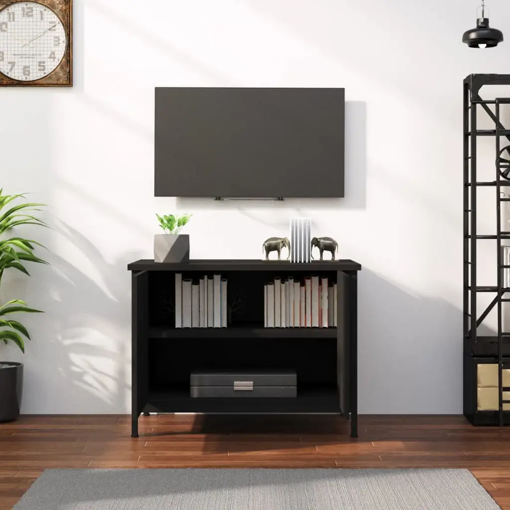 Vidaxl Tv Cabinet Black Engineered Wood, Steel Tv Cabinet Rectangular