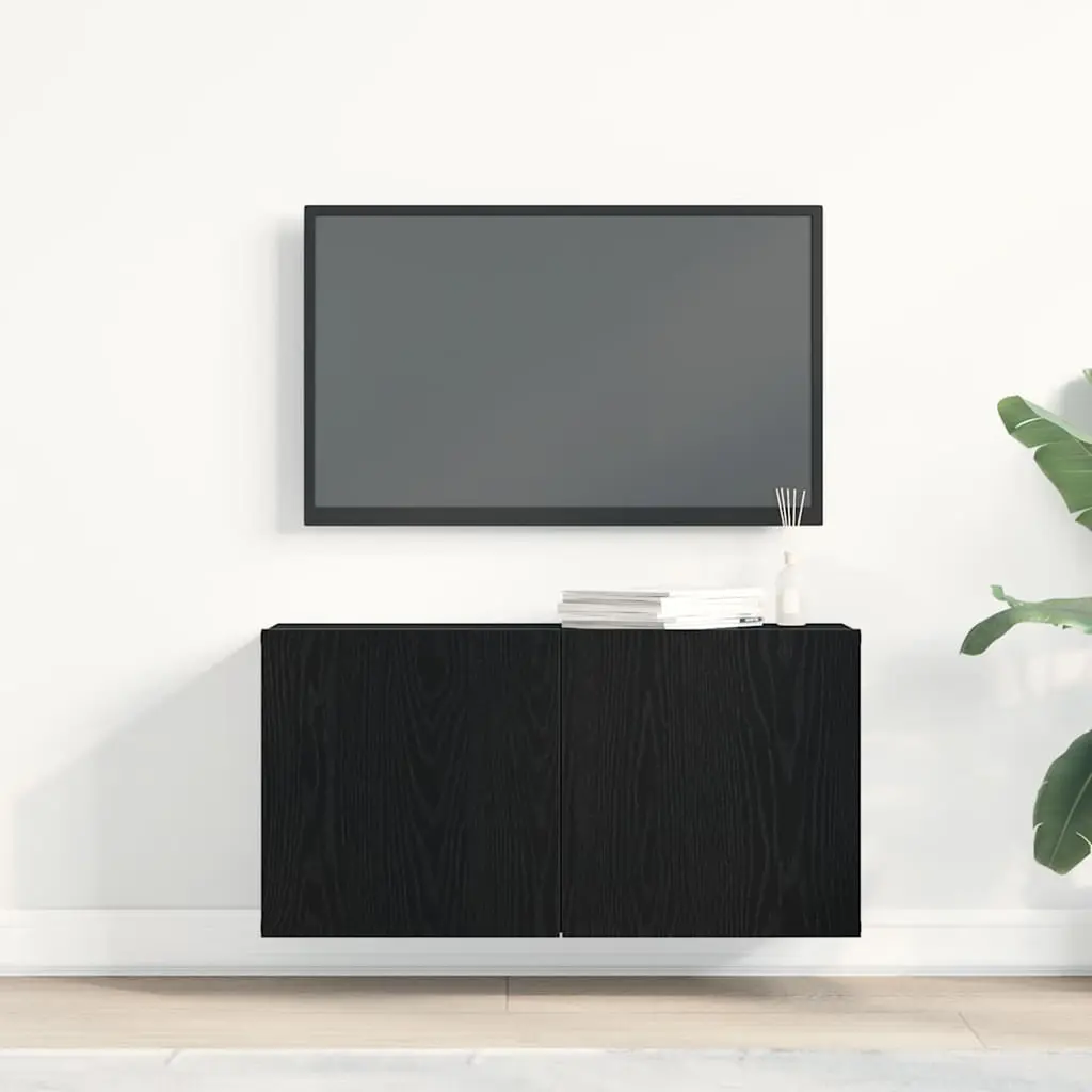 Vidaxl Tv Cabinet Black Oak 31.5 X 11.8 X 16.1" Engineered Wood