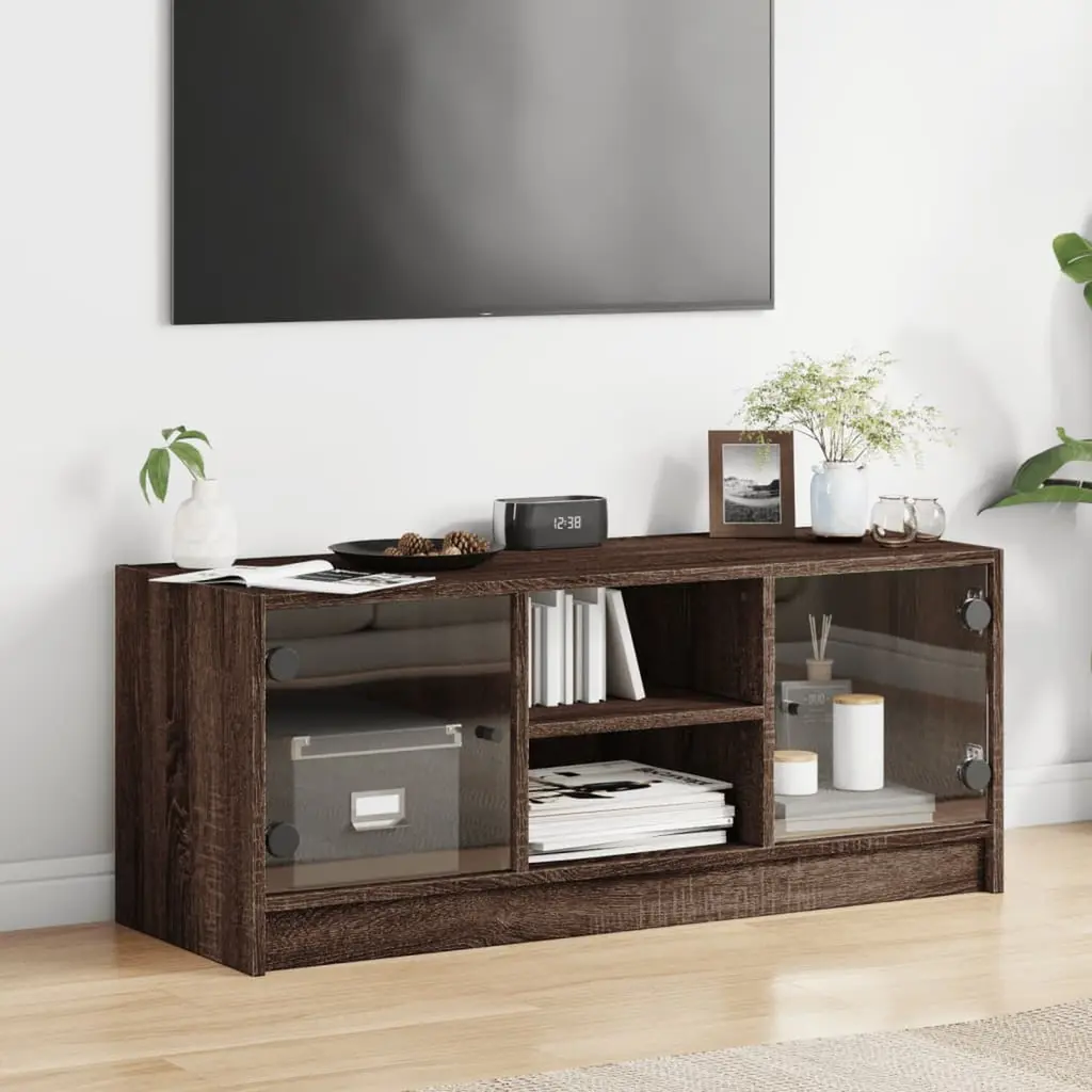 Vidaxl Tv Cabinet Brown Oak Engineered Wood, Glass Medium Tv Cabinet