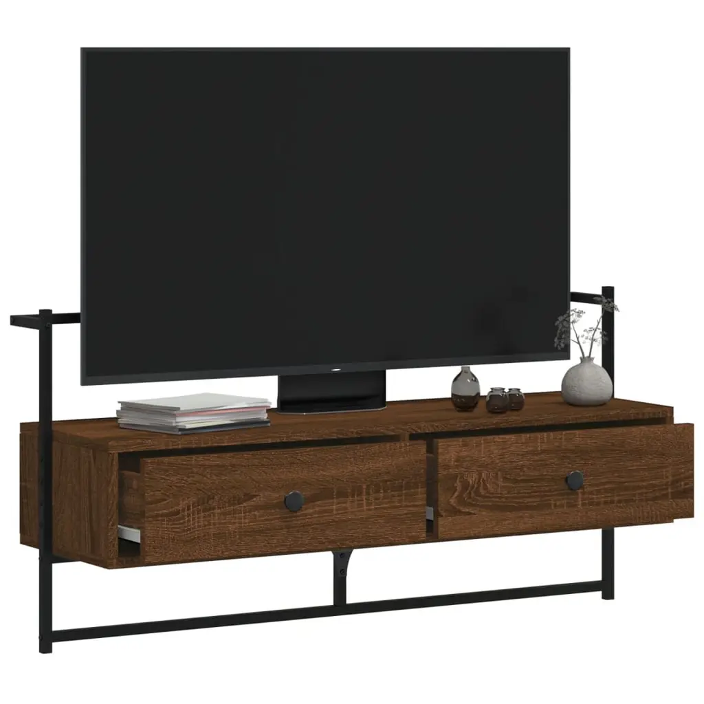 Vidaxl Tv Cabinet Brown Oak Engineered Wood, Metal