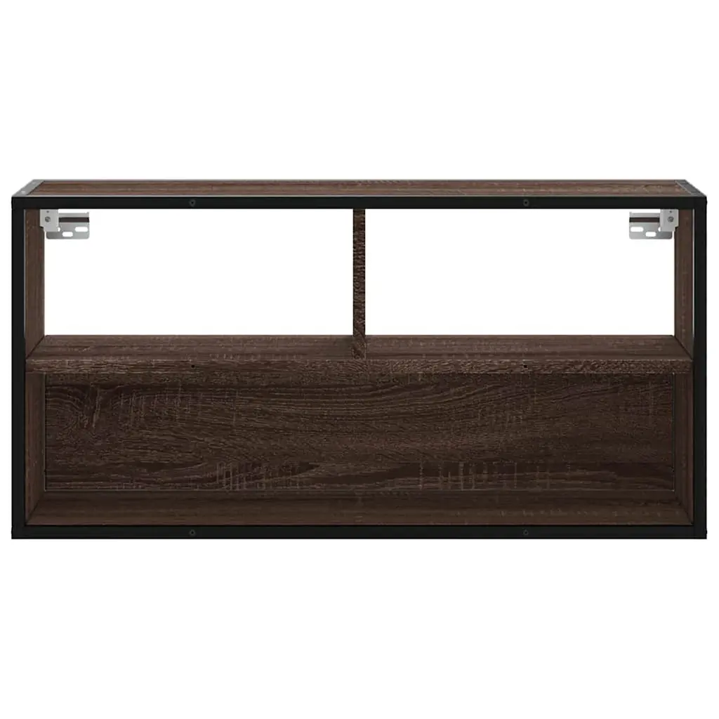 This modern wall-mounted TV cabinet in a lovely brown oak finish mixes style with function. It’s perfect for contemporary settings, showcasing a smooth engineered wood surface that elevates your entertainment space while providing a sleek area for your TV and media devices. Space-saving Design: The wall-mounted layout gives this TV cabinet a sleek look, clearing bulky furniture and opening up your living area.Ample Storage: With a 31.5 in long and 11.8 in wide surface, it fits your TV and has plenty of space for electronics and decorative items like vases or books.Stylish Aesthetic: The brown oak finish and matte black metal frame add an industrial charm, suiting both modern and rustic settings.Durable Construction: Crafted from moisture-resistant engineered wood and a strong metal frame, this TV cabinet can handle daily use without a hitch.Versatile Use: Perfect for all sorts of environments, from contemporary living rooms to cozy entertainment areas, it meets the needs of a multifunctional home setup.