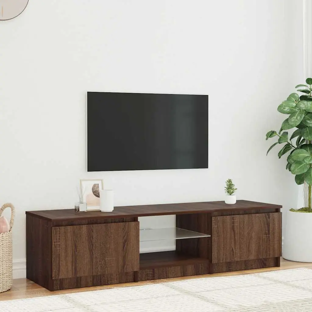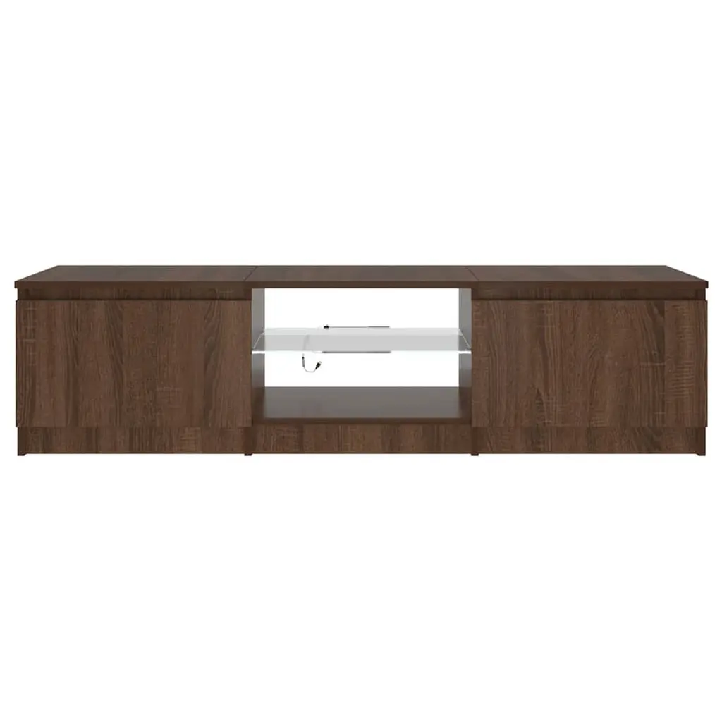This Modern TV Cabinet combines a smart design with practical use, giving your room a classy upgrade. Made from high-quality engineered wood with a rich brown oak look, it's sleek and perfect for living rooms or home theaters. Stylish and Functional: This cabinet's modern design effortlessly fits into any decor, offering a classy way to store your media. With two decorative glass shelves, it's perfect for displaying decorative items.Versatile Lighting Features: With RGB LED lights, you can choose from various settings to set the perfect mood, whether it’s a movie night or a party, all easily adjustable with a remote.Spacious and Thoughtful Layout: Generous shelves and compartments let you keep your TV, games, and other gear organized, making for a tidy space while enjoying your multimedia.Quality Craftsmanship: Made from sturdy engineered wood and tempered glass, this cabinet's built to last, ensuring it stays a stylish part of your home for years.Perfect for Any Room: Suitable for any spot, from living rooms to home theaters, its compact dimensions make it a great choice for maximizing your space while adding a striking element. The product comes with a USB connector, but you won't find the certified 5V USB power source in the box.