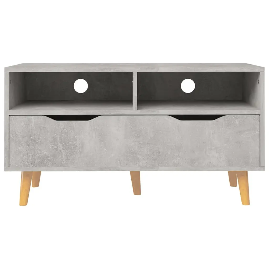 This Modern Concrete Grey TV Cabinet really stands out in any living room. It combines style and function beautifully. With dimensions of 35.4 x 15.7 in, it has a sleek finish, making it just the right media unit for showing off your entertainment devices while keeping everything neat. Durable Frame: Made from engineered wood, this cabinet's built to last, securing your TV and other items safely. Spacious Shelves: Two large shelves offer loads of room for your gadgets and decorative bits, making it easy to keep things organized. Traditional Drawer: Comes with a handy drawer for extra storage, perfect for remote controls and other bits and bobs to keep your lounge tidy. Stable Base: Four solid square legs provide great support, ensuring stability for your TV and electronics. Modern Design: The concrete grey color and minimalist look make this cabinet an ace choice for modern decor, boosting the vibe of any room.