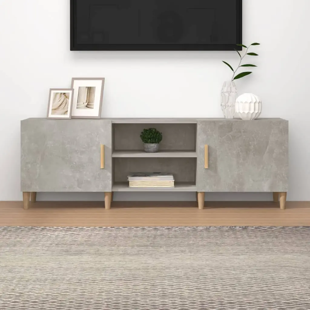 Vidaxl Tv Cabinet Concrete Grey Engineered Wood, Solid Eucalyptus Wood