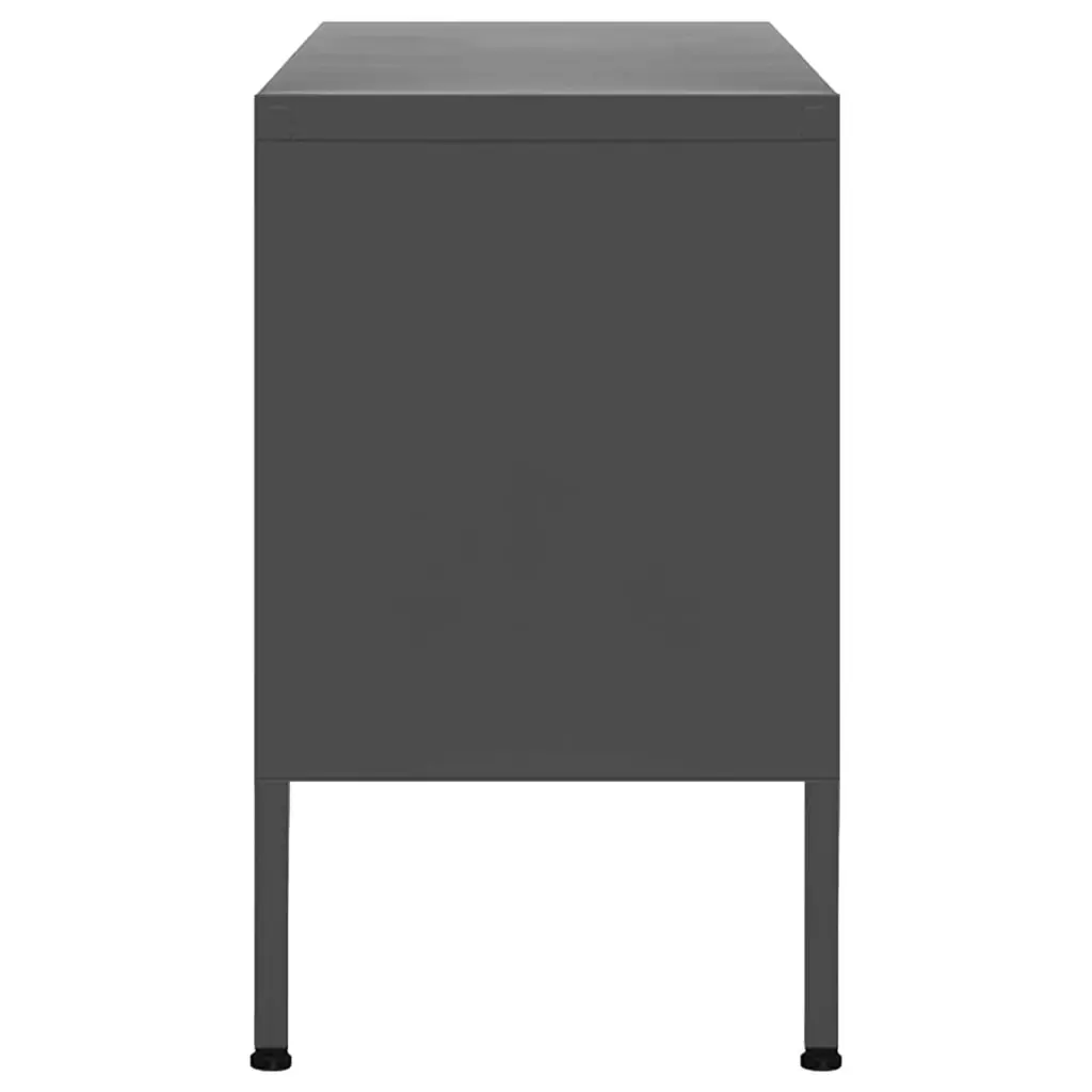 This sleek TV cabinet shines with its stylish design and handy functionality, adding a touch of class to your living room or bedroom. Built from strong steel with a striking gray finish, it not only enhances your space but also provides loads of room for all your media gear. This cabinet has loads of built-in shelves, perfect for showing off your media gear and decorative items.Sturdy legs with adjustable feet keep it stable on different surfaces.Its modern gray color works well with any interior style, giving a seamless look.Designed for practicality, it includes cable management holes to keep wires tidy and hidden away.With a length of 41.3 in and a width of 13.8 in, it offers plenty of surface area while still being compact enough for various rooms.
