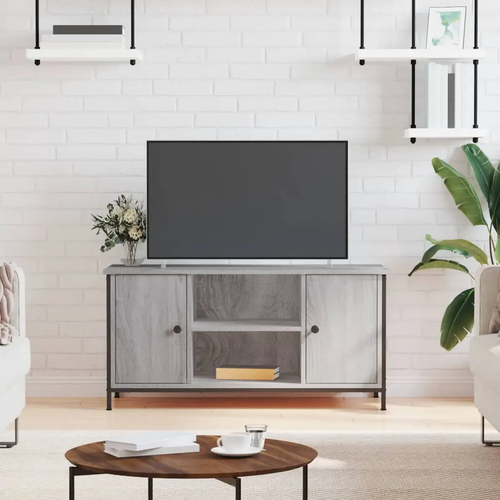 This Industrial Grey Sonoma TV Cabinet is a fantastic addition to your living room or bedroom. It looks great and offers a solid solution for keeping your media organized. The strong design mixes functionality with a trendy loft-style look, perfect for modern homes. Generous Surface: The cabinet has a big surface area of 39.4 x 15.7 in, great for TVs and decor.Multiple Shelves: Comes with two shelves measuring 7.3 in wide and 15.2 in long for keeping your media gear sorted.Strong Build: Made from engineered wood and iron, this cabinet is built to last and super easy to keep clean.Modern Look: The smooth matte finish and industrial style add a chic vibe to any living space.Straightforward Assembly: The TV cabinet includes simple assembly instructions, needing two people and standard tools to set up.