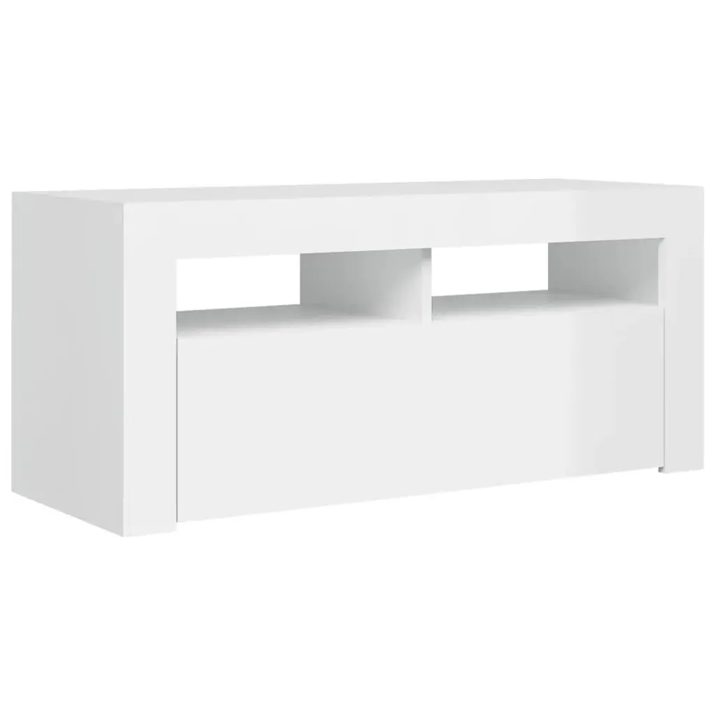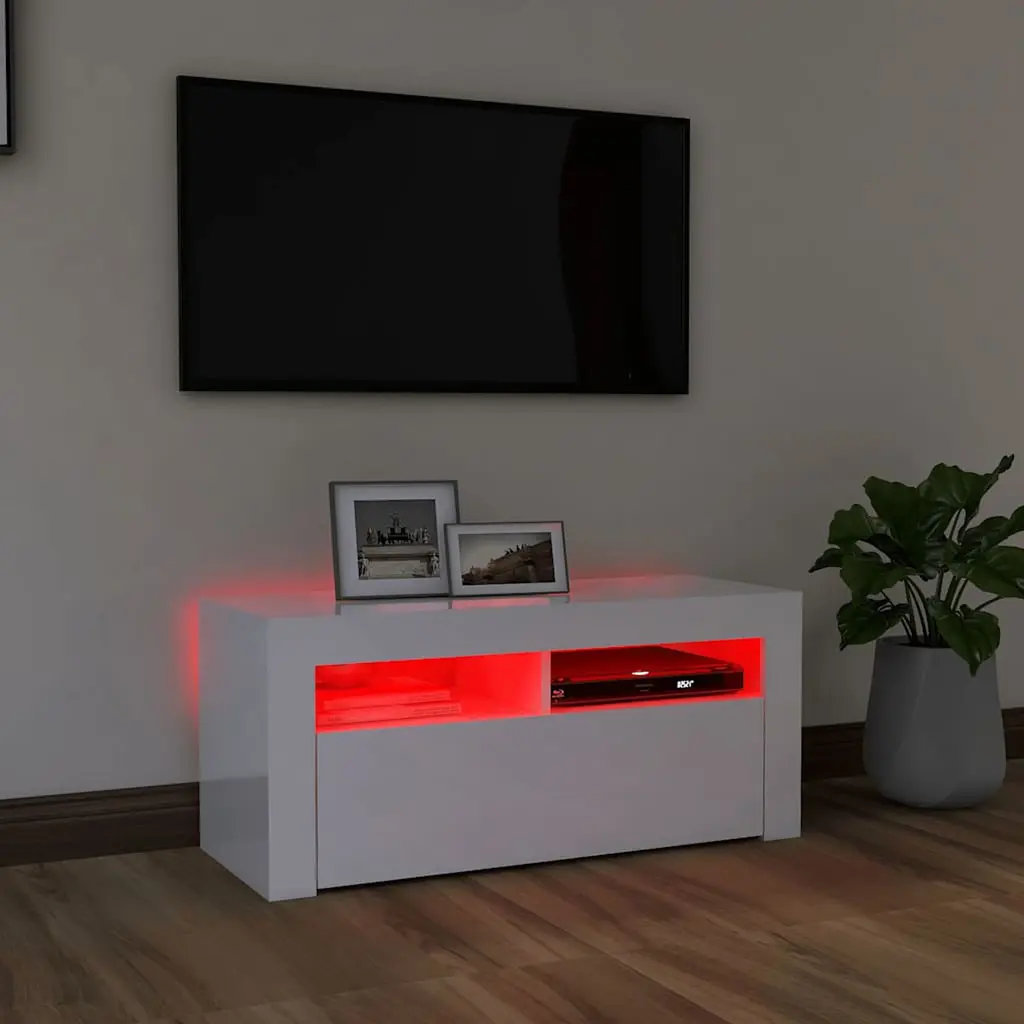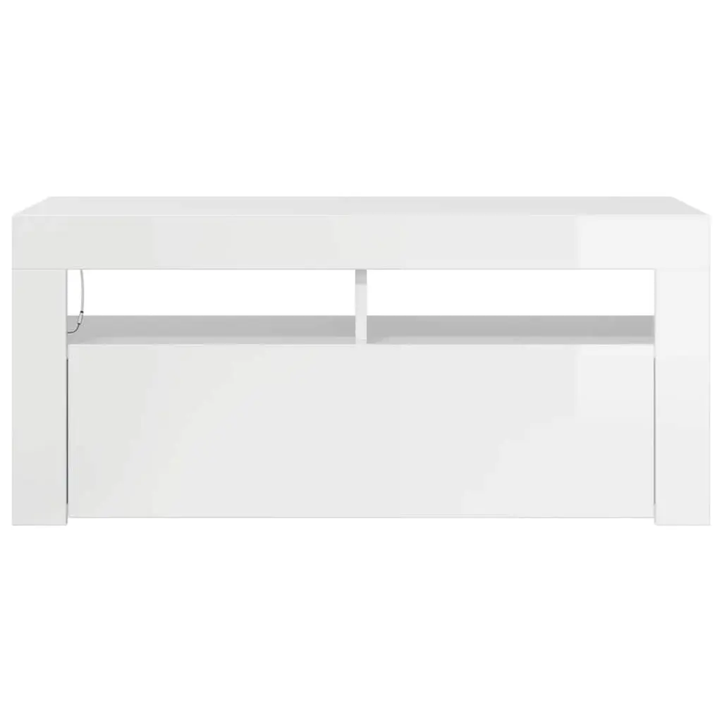 This TV cabinet blends style and functionality, making it just right for modern living spaces. Made from engineered wood and finished in high gloss white, it not only jazzes up your room but also offers practical storage for your media gear. Built-In LED Lighting: Brighten up your space with RGB LED lights that offer a cool mix of colors and patterns, creating a unique atmosphere. This lighting feature makes your entertainment area a real focal point in your living room. Ample Storage Space: With two flexible built-in shelves, you can easily organize and show off your media devices and decorations. This not only maximizes your space but also keeps everything you need within reach. Glossy Finish: The shiny surface not only brings a modern touch but is also a breeze to keep clean, ensuring your cabinet stays sleek and stylish over time. This finish reflects light beautifully, brightening up your space. Durable Construction: Made from engineered wood, this cabinet is built to handle daily use, making it a reliable furniture piece for your home. It perfectly combines durability with the contemporary design you want. Simple Assembly: The product comes with easy-to-follow instructions, allowing for straightforward assembly with just a screwdriver. Enjoy your new TV stand without the hassle of complicated setups.