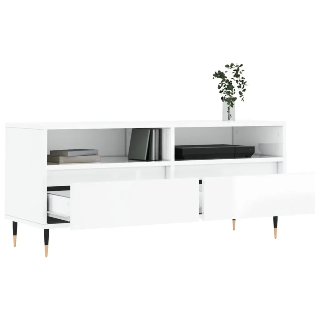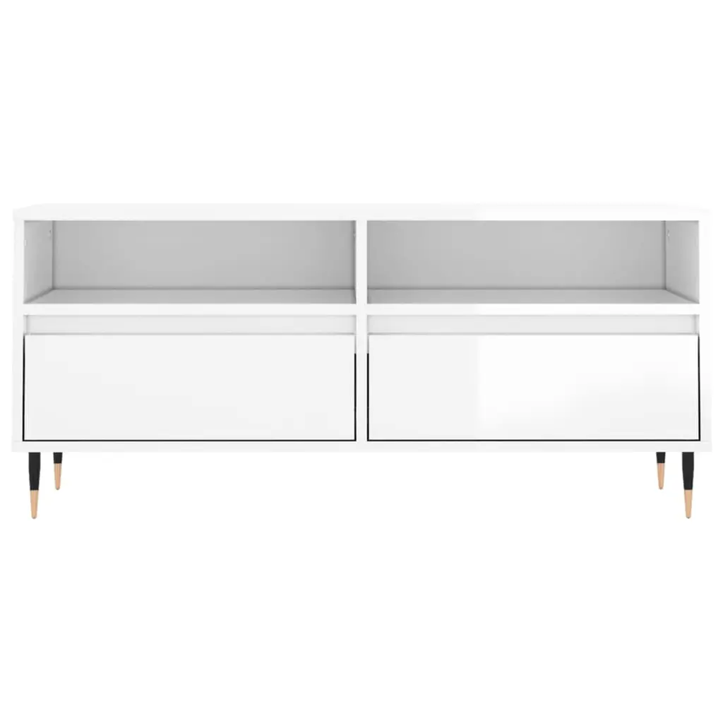 Vidaxl Tv Cabinet High Gloss White Engineered Wood, Iron