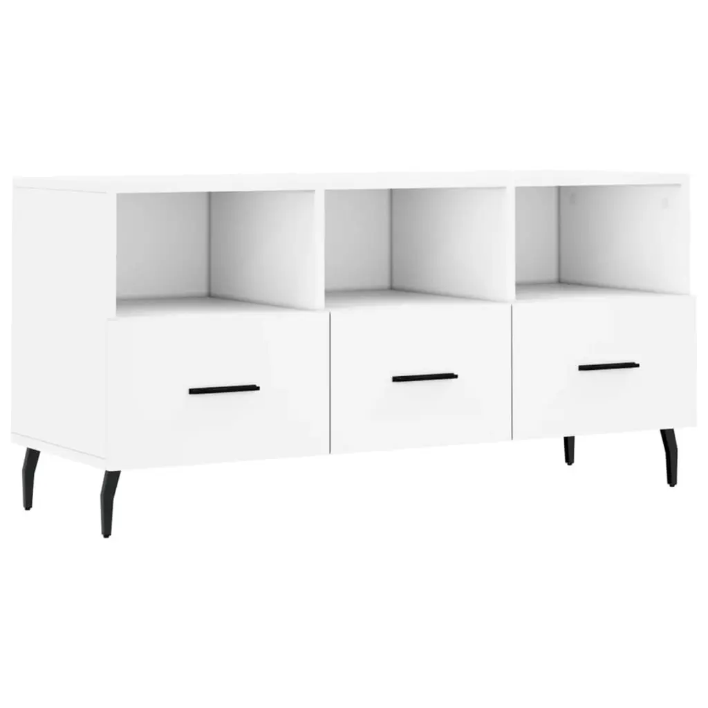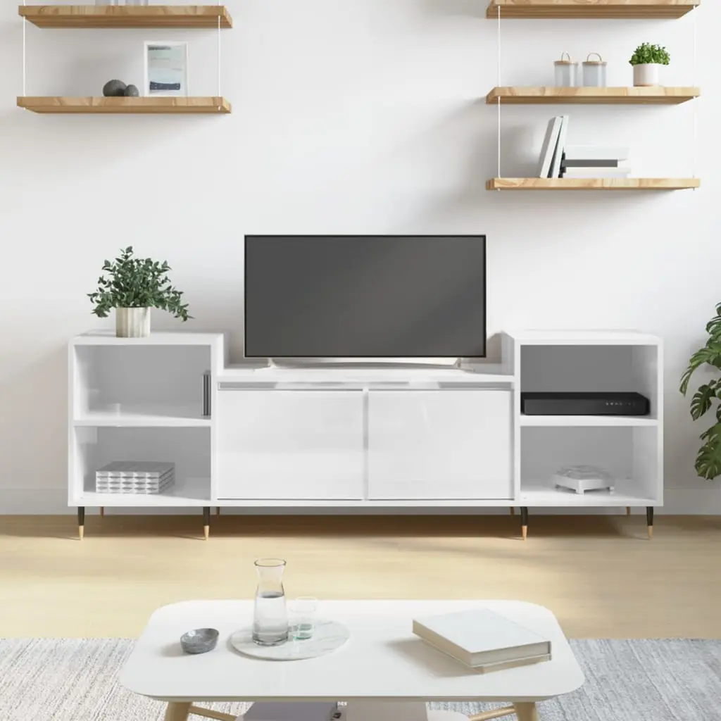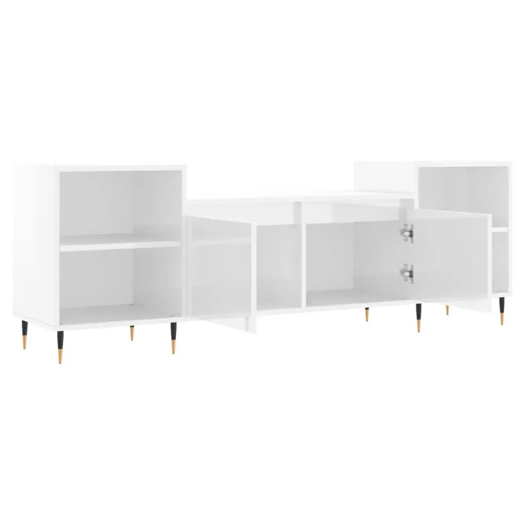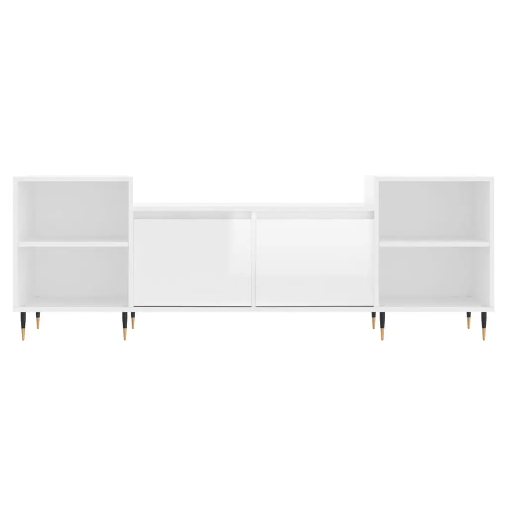 Vidaxl Tv Cabinet High Gloss White Engineered Wood, Metal Large