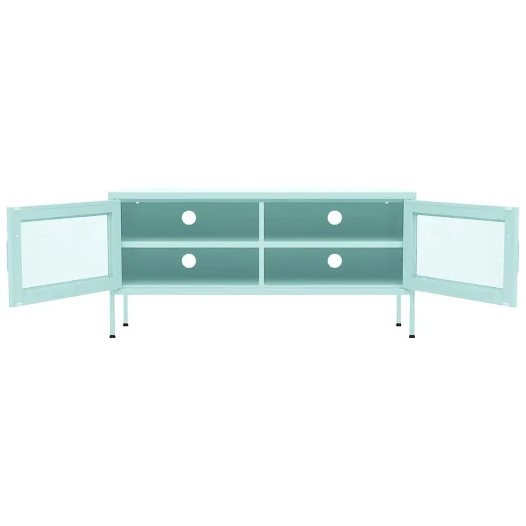 This minimalist TV cabinet is all about blending function with style, giving you a fabulous way to organize your media gear. Its clean lines and mint green finish make it a lovely addition to the modern lounge or bedroom without being over the top, while still adding a refreshing splash of color. Stylish Aesthetic: The trendy mint finish gives this cabinet a contemporary flair, fitting in with various interior styles.Robust Steel Frame: Made from high-quality steel, this cabinet ensures long-lasting use with a max loading capacity of 220.5 lbs, keeping your electronics safe.Versatile Storage Options: The unit boasts a generous shelf 41.3 in wide, perfect for media players, receivers, or decorative items—offering both practicality and order.Enhanced Stability: Adjustable levelers keep it steady, even on uneven floors, making setup a piece of cake anywhere.Cable Management: Built-in cutouts help to keep your cords tidy, avoiding nasty tangles for a neater appearance.