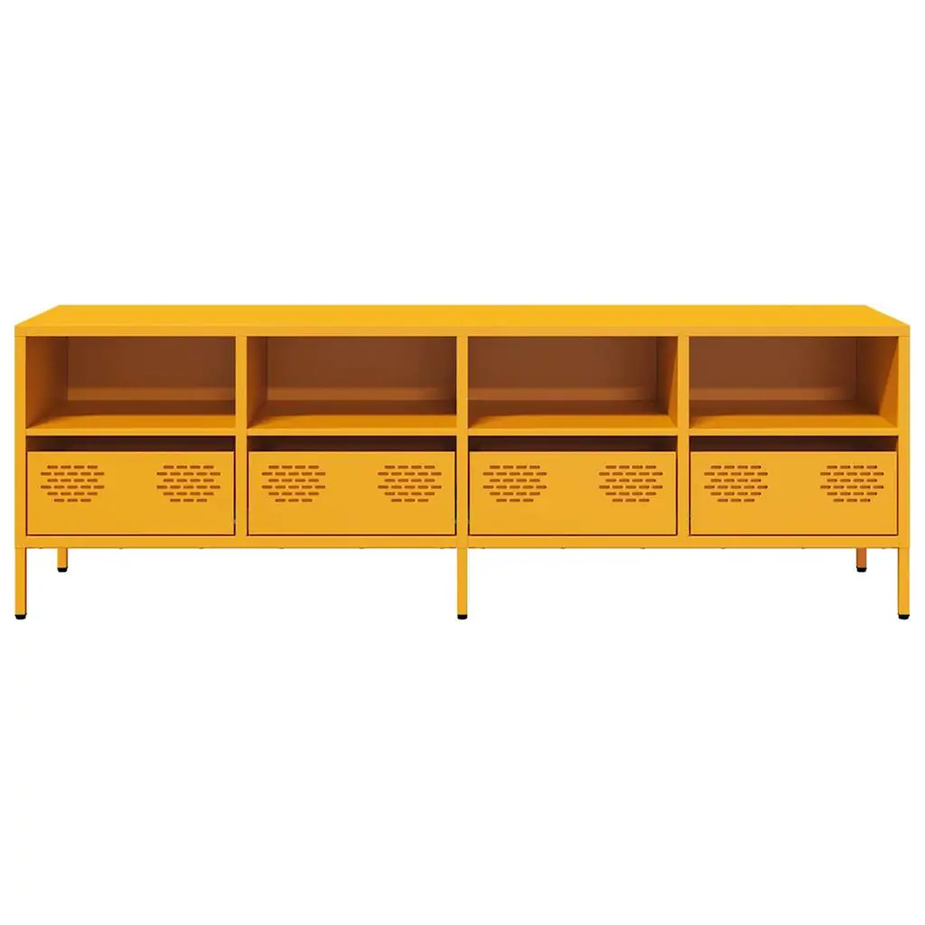 This stylish TV cabinet, done up in a bold mustard yellow, perfectly mixes function with modern looks, making it ideal for living rooms or bedrooms. Made from tough cold-rolled steel, its industrial design not only adds a vibrant splash of color but also offers a strong build to support your media gear and keep your entertainment space organized. Ample Storage: With four big drawers, this TV cabinet lets you easily store and organize your media essentials from DVDs to gaming gear. Industrial Design: A striking mustard yellow finish combined with a smooth, powder-coated look gives it a modern industrial vibe that’s sure to impress. Adjustable Feet: The four adjustable legs ensure it stays steady on uneven floors, so your TV cabinet always sits level and secure. Robust Build: Made from cold-rolled steel, this cabinet is durable enough to withstand daily life while keeping its stylish appearance. Easy to Clean: The powder-coated finish not only looks great but also makes it easy to wipe off dust and marks, keeping your unit looking sharp.