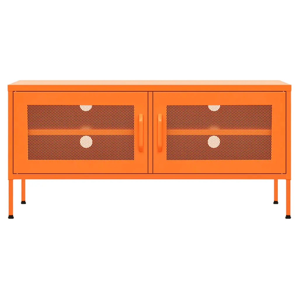 This Industrial Steel TV Cabinet boasts a bright orange finish that not only brings character to your style but also matches modern decor with its sleek design. It's perfect for keeping your media devices sorted and works well in contemporary living spaces, blending practicality with style. Its solid build and spacious storage options mean every home can make use of it. Sturdy Construction: Made from robust powder-coated steel, this cabinet can handle everyday use while looking sleek.Ample Storage: The shelf gives you plenty of room for all your media gear, from gaming consoles to boxes, keeping everything tidy and handy.Effective Cable Management: Integrated cable cutouts help keep cords managed, lending a clean, tidy look that suits your entertainment spot.Versatile Use: Ideal for the living room or bedroom, this cabinet serves as a smart media storage solution for various devices.