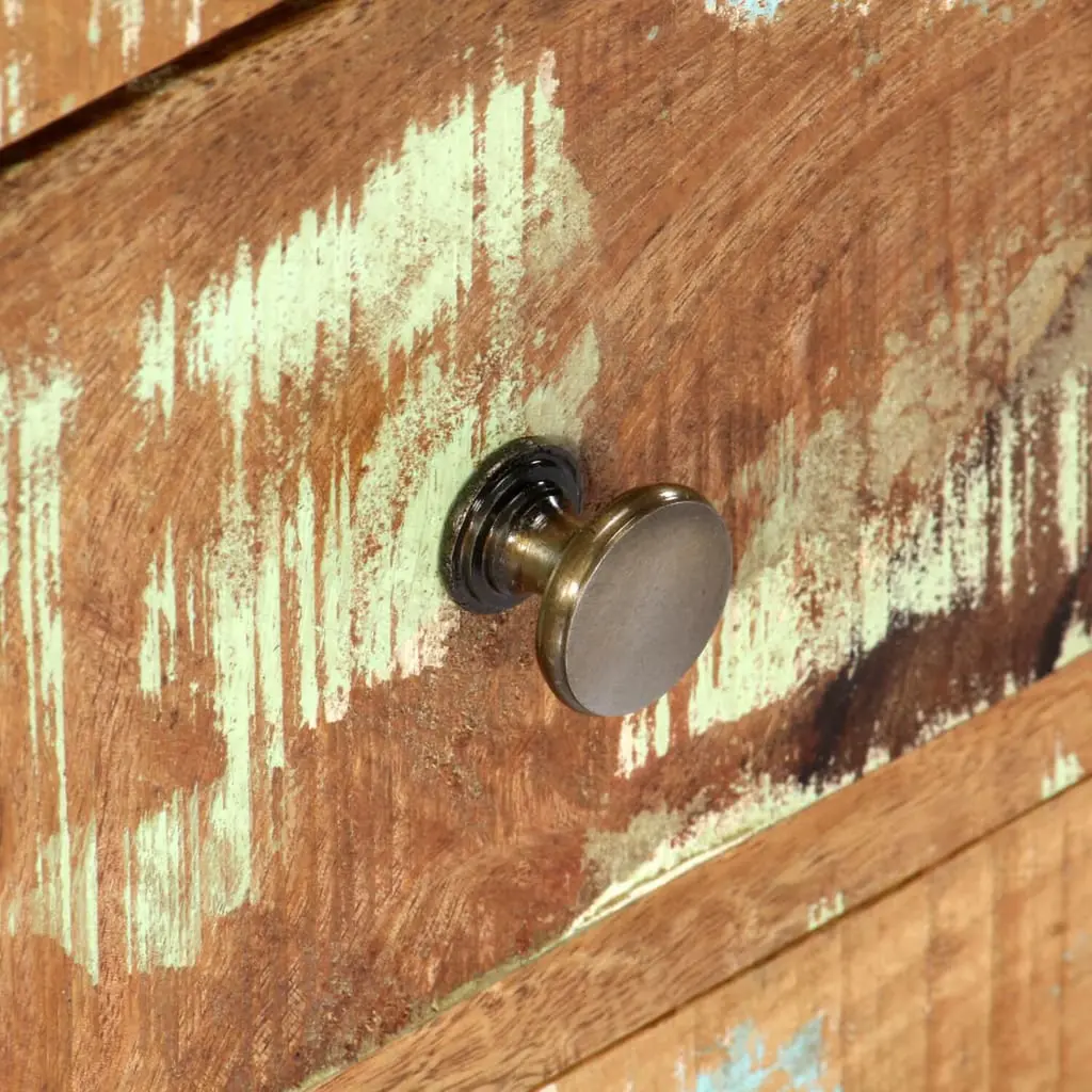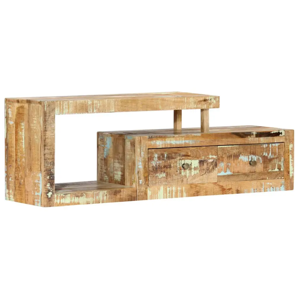 This vintage style TV cabinet brings a rustic vibe and practicality to your living space. Made from solid reclaimed wood, it showcases a mix of grains and colors. The polished finish not only enhances the wood's rich appearance but also adds a classy touch to your decor, making it a perfect centerpiece for your TV and accessories, all while blending beautifully with your style. Ample Storage: With three roomy compartments, this cabinet offers plenty of space for multimedia devices, gaming consoles, and decorative bits, keeping your area neat and tidy.Craftsmanship: Handcrafted from solid reclaimed wood, every piece is unique, showcasing its history and eco-friendly quality while offering sturdy construction that holds up.Stylish Versatility: The vintage style blends perfectly with both modern and traditional settings, making it ideal for everything from welcoming living rooms to stylish entertainment areas.Heat & Scratch Resistant: The polished surface enhances its looks and is designed to handle daily use, protecting against heat from electronics and scratches from regular handling.Easy Maintenance: This elegant yet practical TV cabinet needs minimal upkeep, just a quick wipe down with a soft cloth to keep it looking great for years.