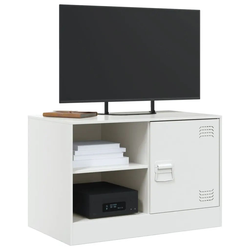 This TV cabinet gives a classy way to sort your entertainment space, blending function with a modern vibe. Made from strong cold-rolled steel, it has a pure white color that fits right into any contemporary living room or office, creating a nice atmosphere while providing solid storage. Ample Storage: With two steel shelves, this cabinet keeps your TV and media bits tidy, providing a clutter-free space. It's designed to hold everything from consoles to cable boxes, ensuring easy access and storage.Sturdy Design: Made from tough cold-rolled steel, this cabinet isn't just good-looking; it's also really strong, securely supporting your TV and other gear. The solid build means it'll last, making it a smart buy for your living space.Modern Style: The sleek lines and super minimalist vibe elevate your interior. This cabinet acts as a stylish focal point in your entertainment area and goes well with various styles, making it great for homes or offices.Easy Maintenance: Cleaning is a breeze with this cabinet—it just needs a wipe down with a damp cloth. The smooth surface makes it easy to keep dust and smudges at bay, so it always looks good as new.Space-Saving Dimensions: At 26.4 in long, 15.4 in wide, and 17.3 in high, this cabinet fits nicely in tight spots, perfect for small living areas while still offering loads of storage.