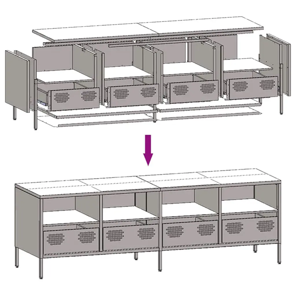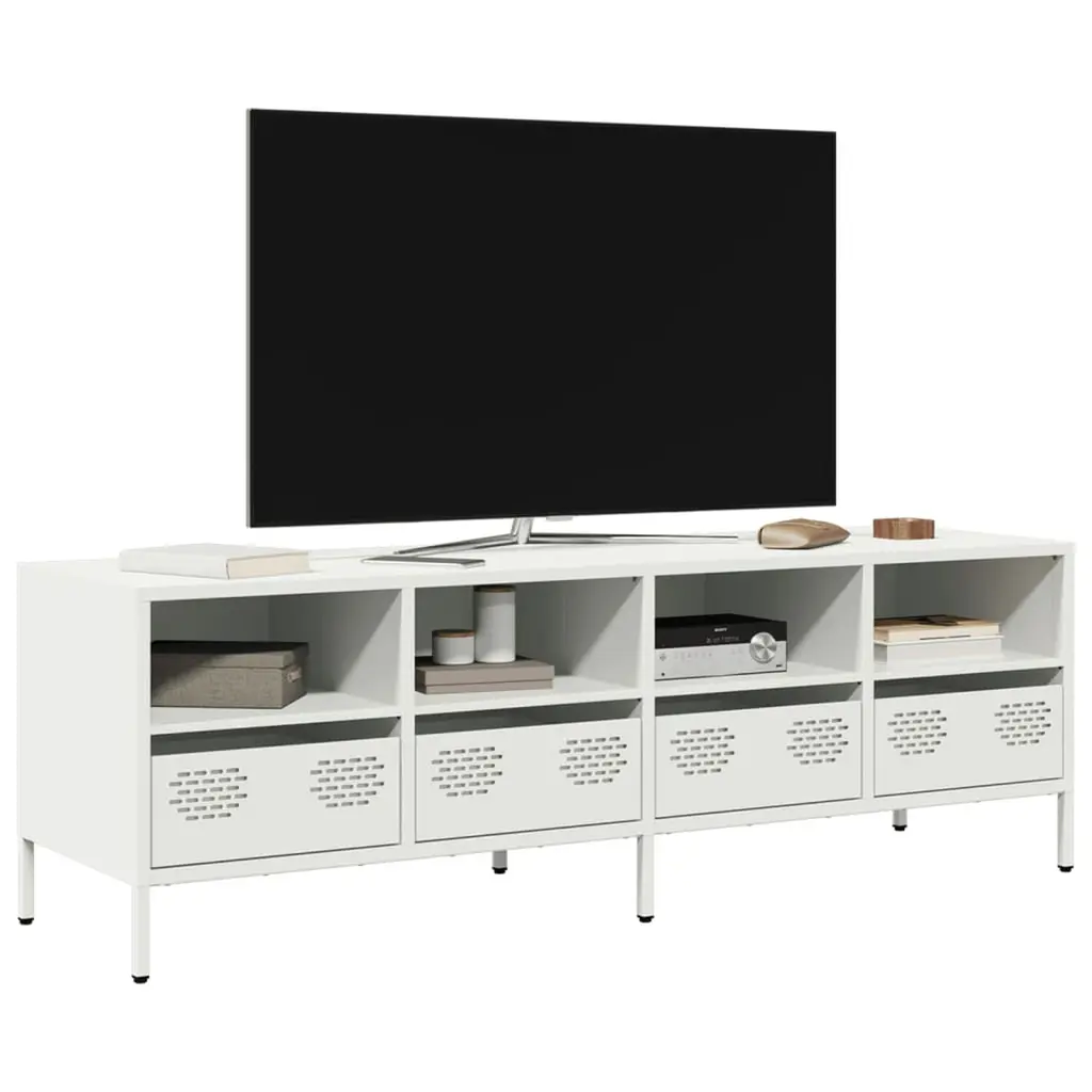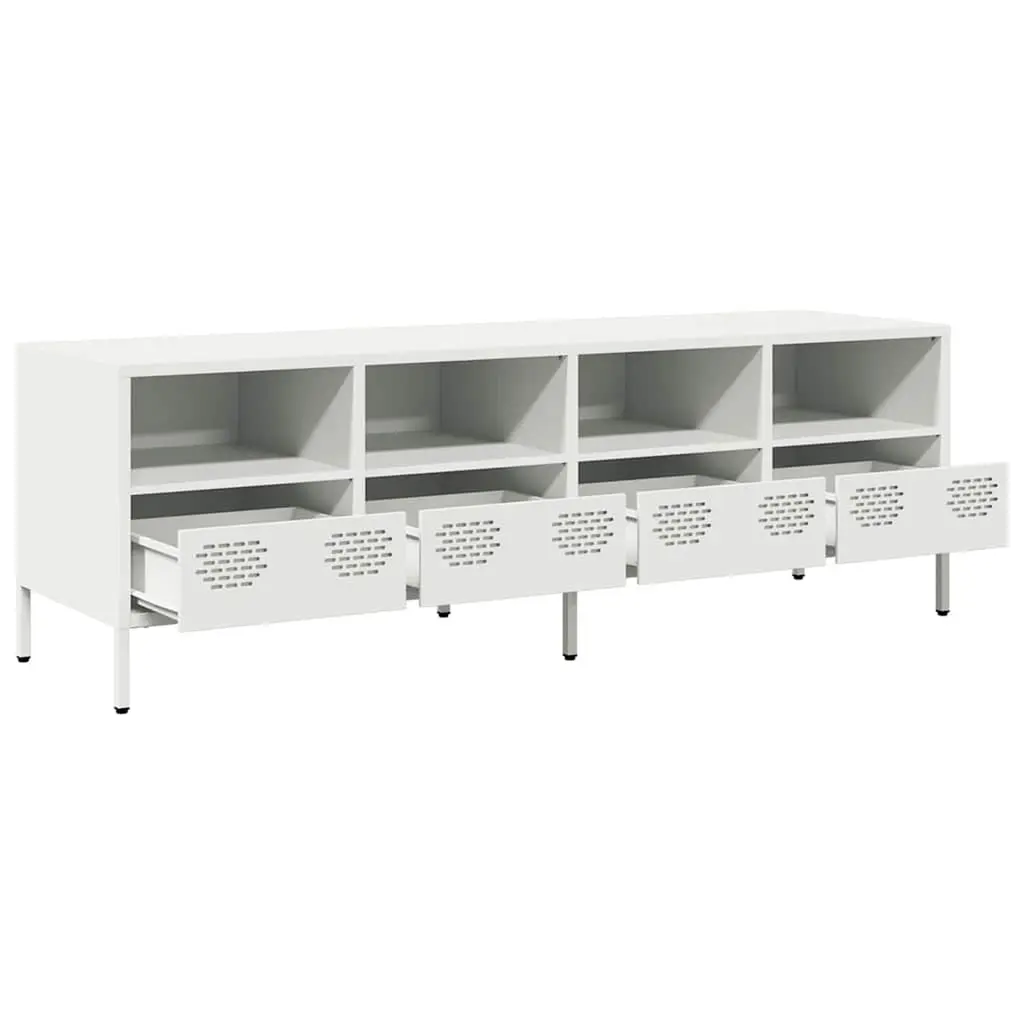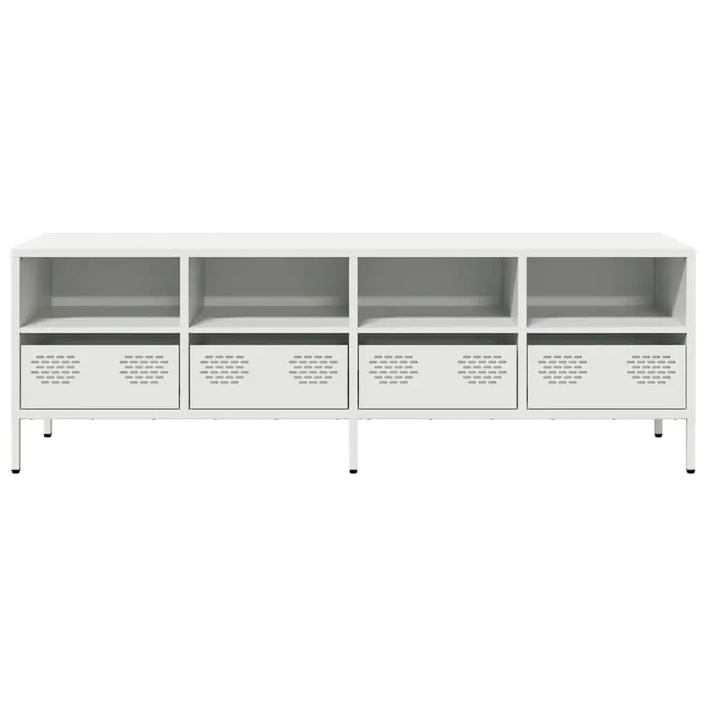 This Industrial Style TV Cabinet catches the eye with its bold white color and smooth design, making it a stunning addition to any living room or bachelor pad. Its sleek finish and clean lines don't just offer practicality; they also amp up the overall vibe of your space, serving as a standout piece for your entertainment area. Ample Storage: With four spacious drawers and compartments, this cabinet has plenty of room to organize media devices, game consoles, and other accessories. The large storage keeps everything tidy, making it easier to grab what you need during movie nights or gaming sessions.Adjustable Feet: The adjustable feet can easily adapt to uneven floors, promoting stability. This is especially handy in older homes, ensuring your media cabinet stands strong no matter the surface it’s on.Durable Construction: Made from cold-rolled steel, this TV cabinet promises to last. The powder-coated finish not only looks good but also protects it from scratches and wear, keeping it looking fresh for ages.Sleek Design: The minimalist style goes well with various interiors, from industrial to modern. This cabinet nicely combines function with looks, fitting perfectly in living rooms, bedrooms, or dedicated entertainment spots.Easy Maintenance: The smooth, white surface is super easy to clean. Just use a damp cloth to wipe off dust and fingerprints, keeping your furniture looking great all the time.