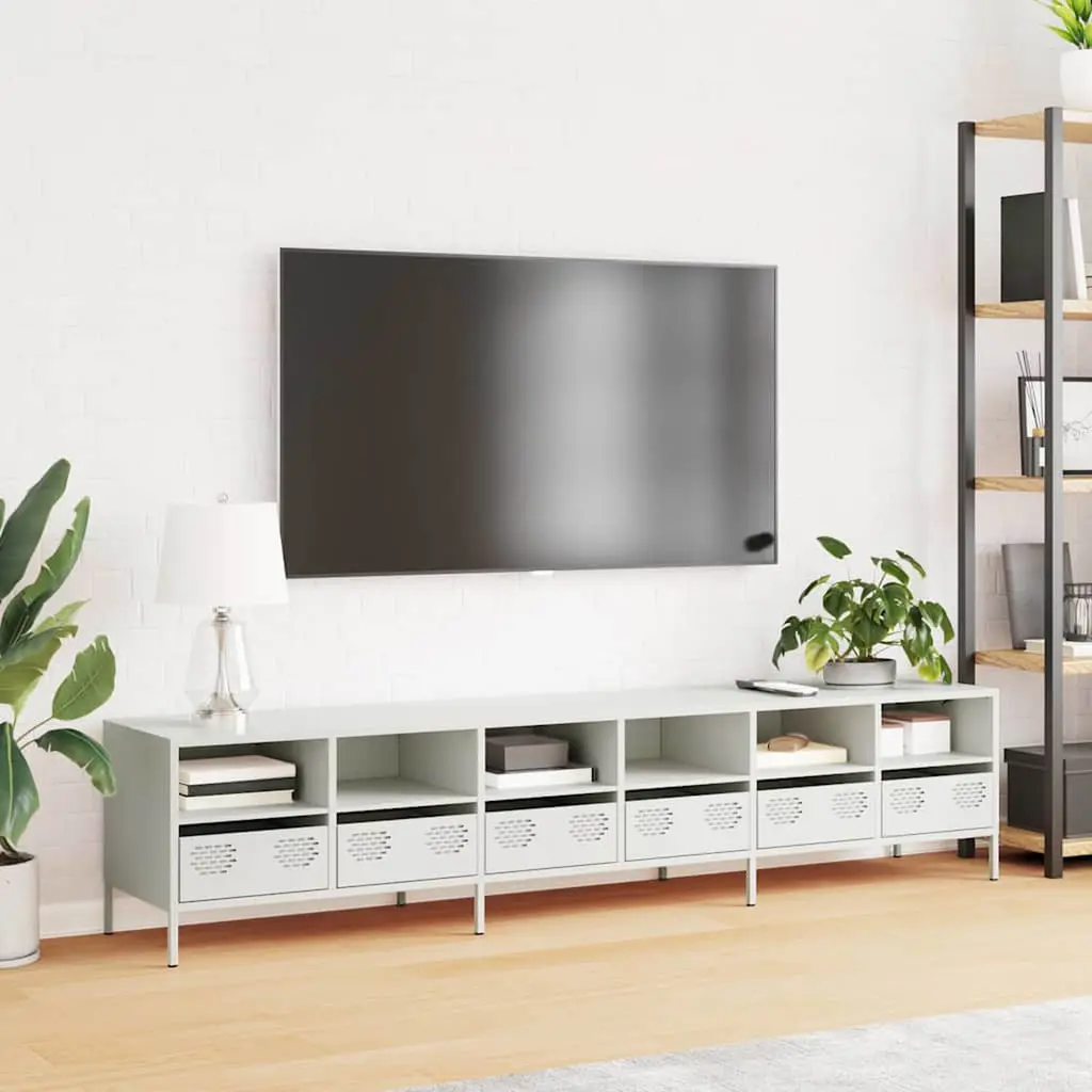 Vidaxl Tv Cabinet White Cold-Rolled Steel Large Tv Cabinet Rectangular