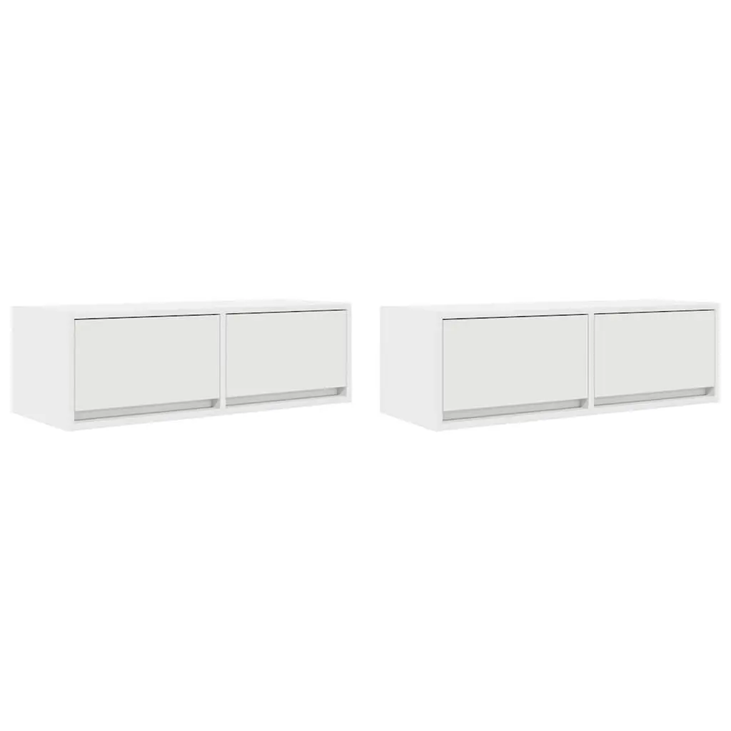 This modern TV cabinet blends style with functionality, offering a smart way to organize your living room. Made from tough engineered wood with a white matte finish, it's perfect for storing electronics, games, or decorative items while looking stylish. Versatile Usage: This cabinet can serve as a media console, sideboard, or decorative shelf. Spacious Design: Two drawers give you loads of storage for remotes, DVDs, or other bits and bobs. Wall-Mounted Flexibility: Fixes securely to the wall to save floor space and looks neat. Attractive Finish: The matte finish enhances the cabinet's looks and makes cleaning easy. User-Friendly Assembly: The cabinet comes with easy assembly instructions and all the mounting kit you need.