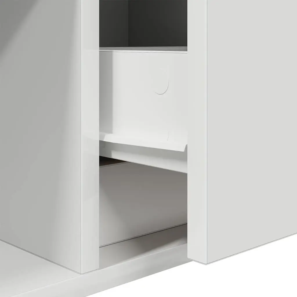 This TV cabinet mixes functionality with modern style, making it a great addition to your home. Made from tough engineered wood in a bright white finish, it enhances your entertainment space while offering plenty of storage for your gadgets. Ample Storage: Spacious compartments to keep your remotes, game consoles, and media tidy and organized. Wall-Mountable: Designed to save floor space and keep everything neat. Modern Aesthetic: Chic lines and a matte finish that fit any decor. Durable Construction: Made from engineered wood, it’s built to last, supporting up to 132.3 lbs while still looking fab. Easy Maintenance: The smooth surface makes cleaning a breeze – just a quick wipe down keeps it looking sharp.