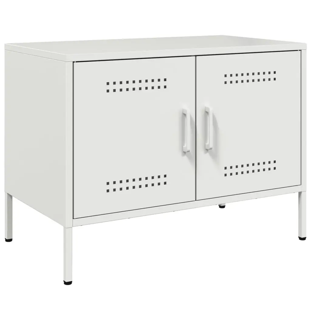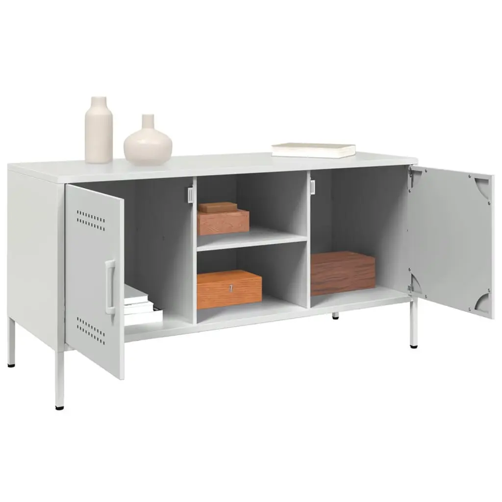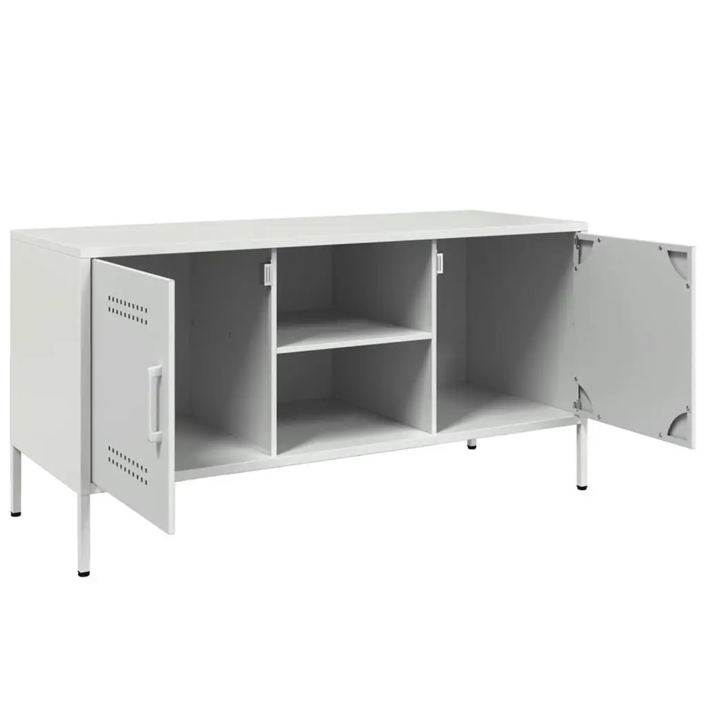 This TV cabinet features an industrial-style design with sturdy steel construction and a clean white finish, making it a smart addition to any living room or bedroom. With its minimalist yet practical style, it not only acts as a media unit but also enhances the decor, giving a sleek and modern touch while securely holding your entertainment devices and accessories. Extensive Storage: The unit's got loads of space with its two strong steel doors, giving you plenty of room for your gadgets and essentials. The mix of open and hidden storage means you can keep your living area tidy while having everything you need at arm's reach.Robust Industrial Design: Made with a tough, industrial look, this TV cabinet adds a stylish touch inspired by urban and warehouse designs. Its matte finish not only looks good but also enhances the product’s durability.Sturdy Steel Construction: Fully made from durable steel, this cabinet is built to take daily use, ensuring it lasts long. Minimal upkeep needed, just clean it with a cloth to keep it looking fresh.Versatile Use: Good for both living rooms and bedrooms, this handy cabinet can act as an entertainment center or extra storage. It’s ideal for holding televisions, gaming consoles, and media players while blending in with different styles.Effortless Assembly: Made for the average person, the TV cabinet comes with all the necessary instructions and tools, needing just a screwdriver for a quick setup. The wall attachment device included keeps it safe and stable.